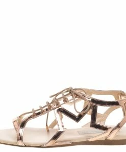 Cheap 🌟 Stella McCartney Rose Gold Faux Leather Star Cut Out Lace Up 🩴 Sandals Size 39 For 👩 Women 🎉