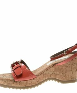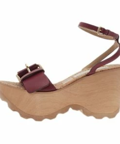 Best Sale 😉 Stella McCartney Bordeaux Faux Leather Buckle Ankle Strap Wedges Size 38 For 👩 Women 🎁