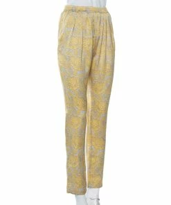 Best deal ๐ฅฐ Stella McCartney Yellow Floral Printed Silk Tapered Pants S For ๐ฉ Women ๐
