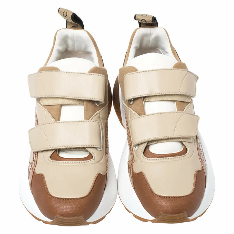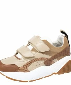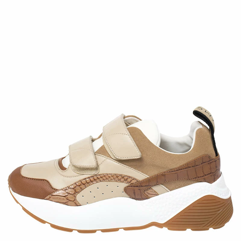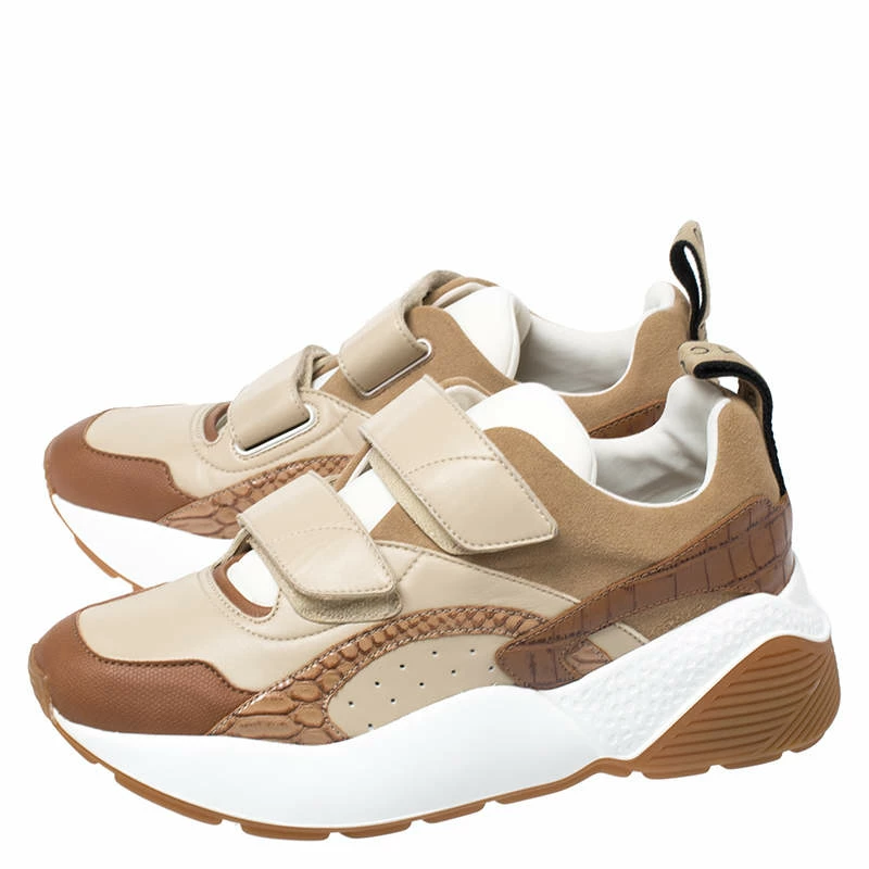 Stay in comfort with these sneakers from Stella McCartney. Crafted with a combination of fabric and faux leather, this pair has textured soles in rich tones along with velcro closure on the uppers. Comfortable fabric lining and tough rubber soles complete these Eclypse sneakers.