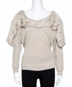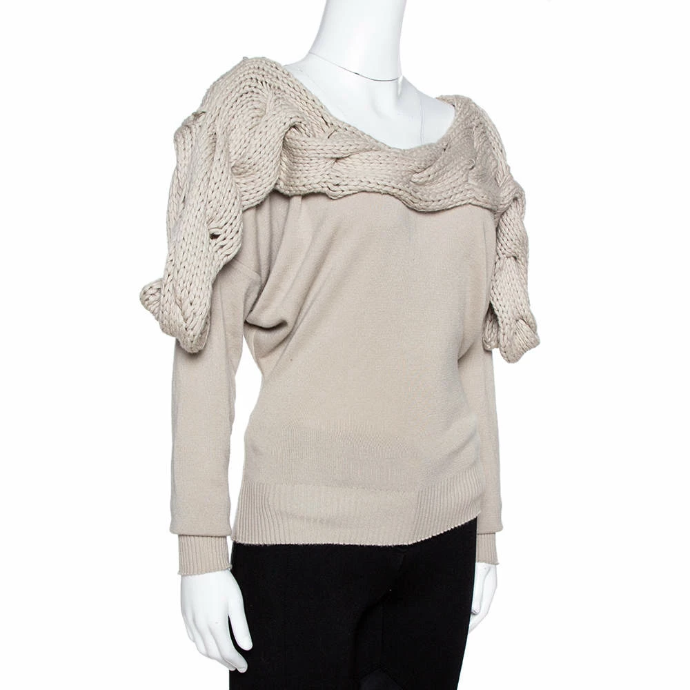 Plush and warm, this sweater by Stella McCartney is made from cashmere and silk. It is styled with long sleeves and a chunky knit panel laid on the shoulders. Nail a super stylish look with ease by pairing this creation with jeans and boots.