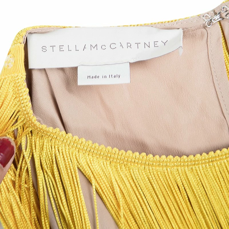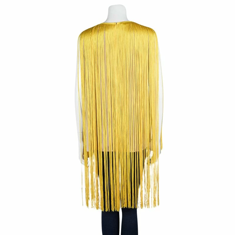 To complement your upbeat style, Stella McCartney brings you this gorgeous tunic that comes flowing with high-fashion. It is made from the finest materials and designed as a sleeveless with contrast fringe details hanging from the shoulders and neck. Pair it with a white high-waist skirt and thigh high boots to look like a diva.