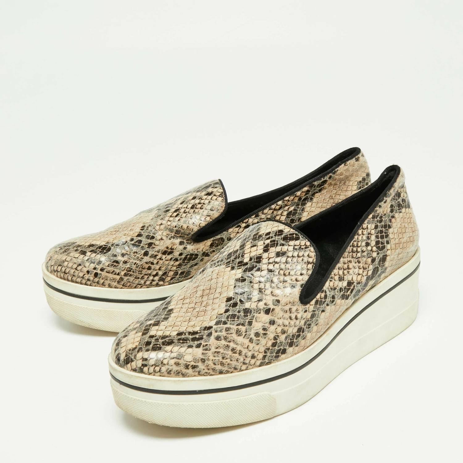 These sneakers by Stella McCartney are designed in an easy slip-on style and hence are a must-have. It flaunts a faux python leather body which accentuates in contrast to the rubber sole carrying a white hue. Save these beige sneakers for your casual off-duty looks.