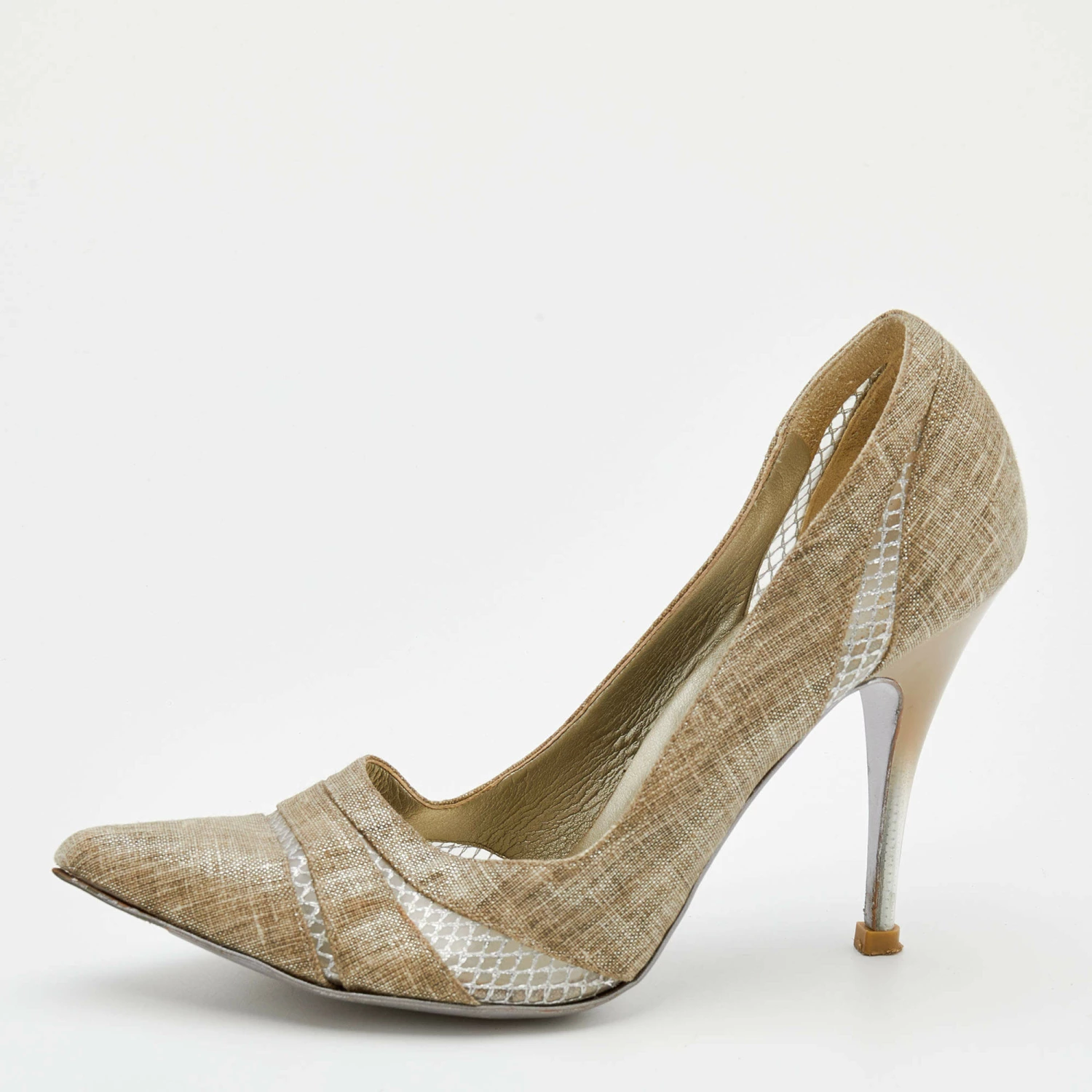 These Stella McCartney pumps are a great choice if youโre looking to add a pair that’s both classy and versatile. The pair has a pointed-toe shape in fabric and mesh with 10 cm heels elevating the base and creating a lovely silhouette.