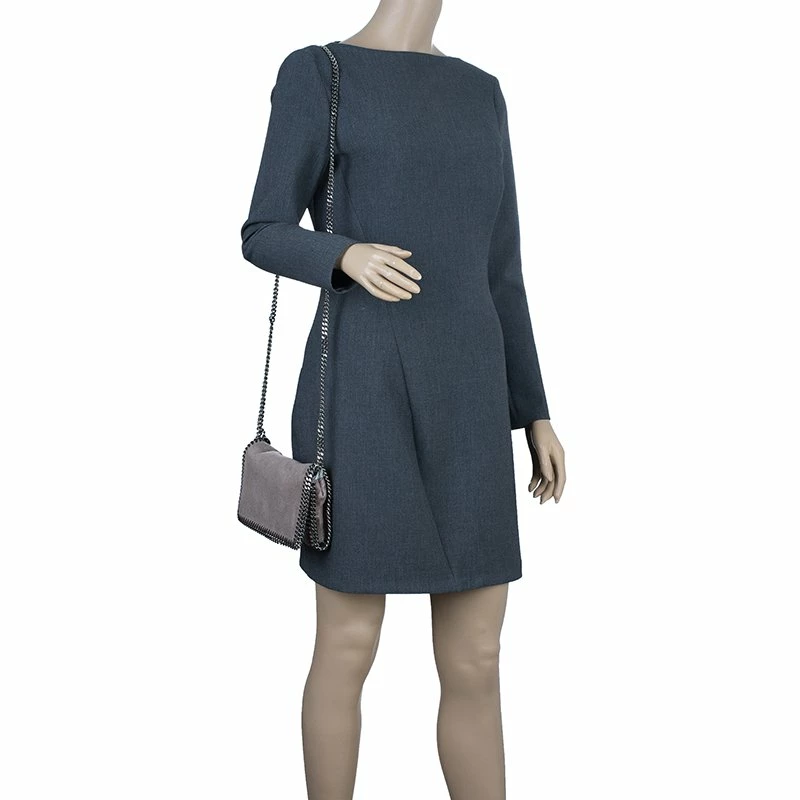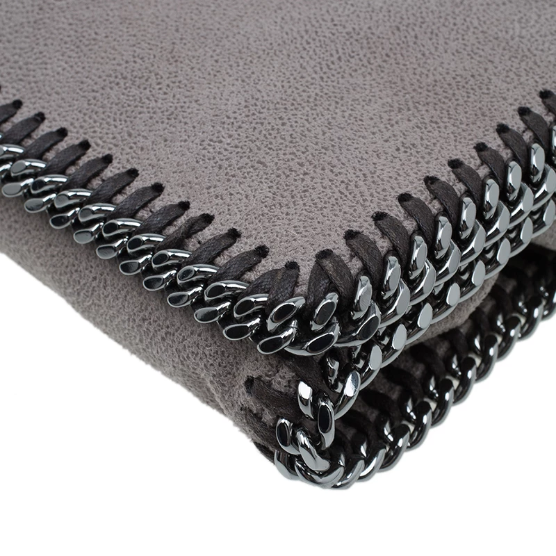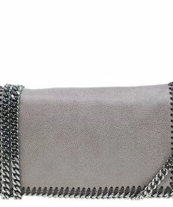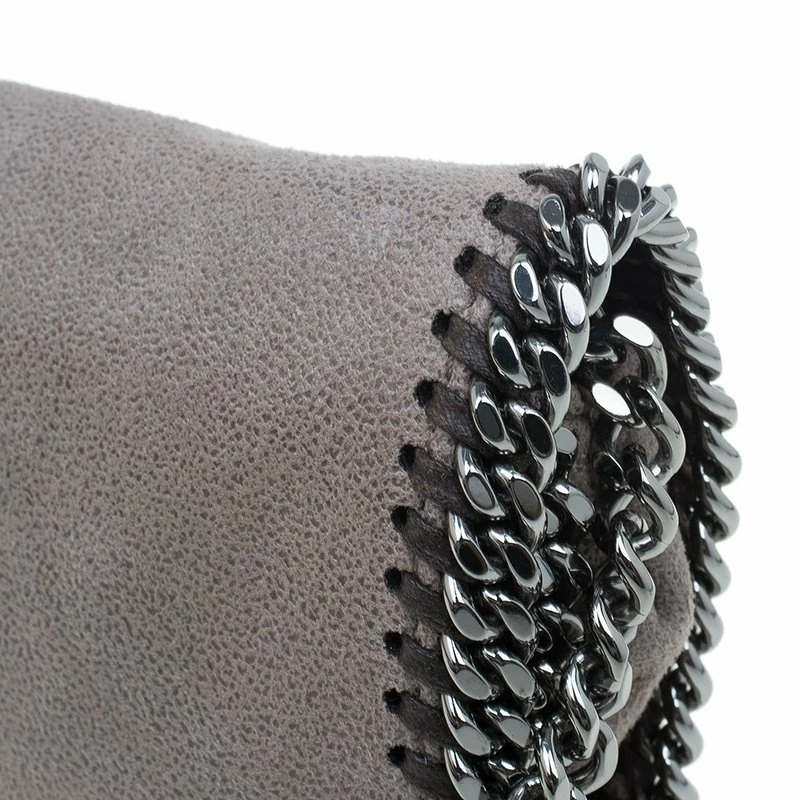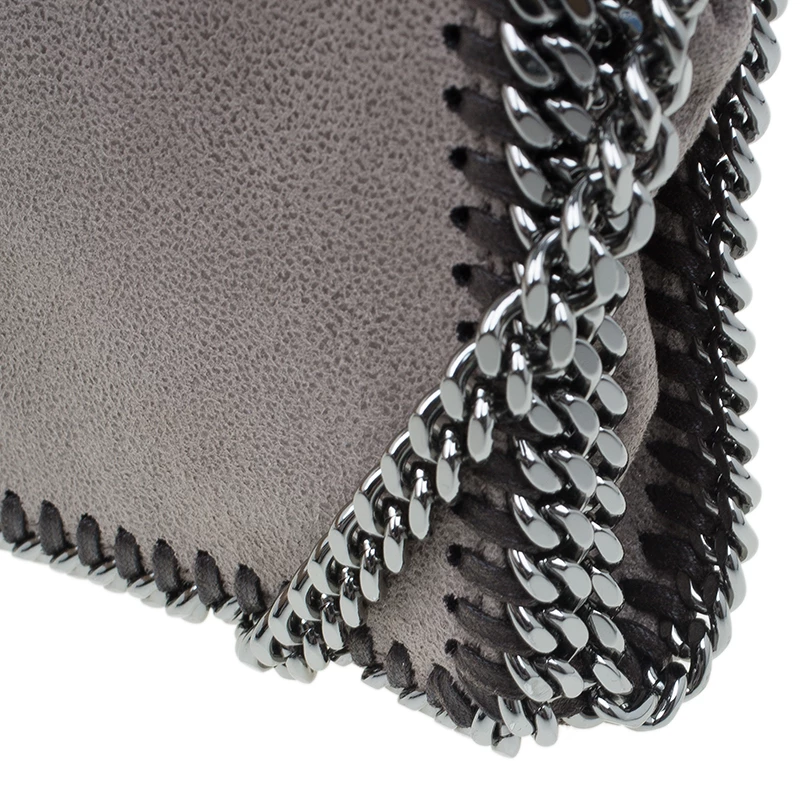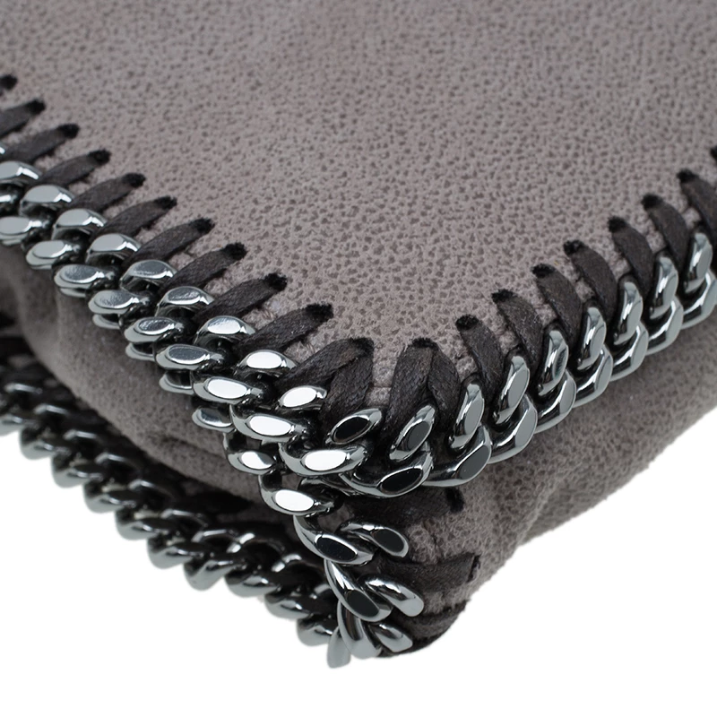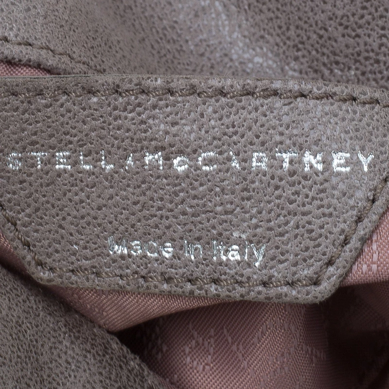 Dress up your outfit with this fashion forward Falabella crossbody by Stella McCartney. This flap over style bag is made from beige faux leather with polished silver chain link trim that features two Stella McCartney engraved round charms. The interior is lined with pink monogrammed canvas and features one patch pocket.