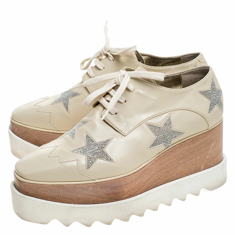 Stella McCartney exudes their high style and unique fashion taste with these Elyse derby shoes. They are brimming with exquisite details like the star details on the faux leather exterior, the laces, and the thick platforms. Grab this pair today and let it help you express your fabulous style.