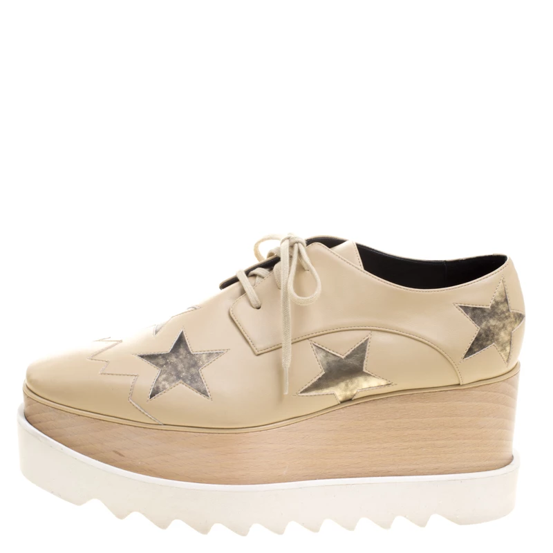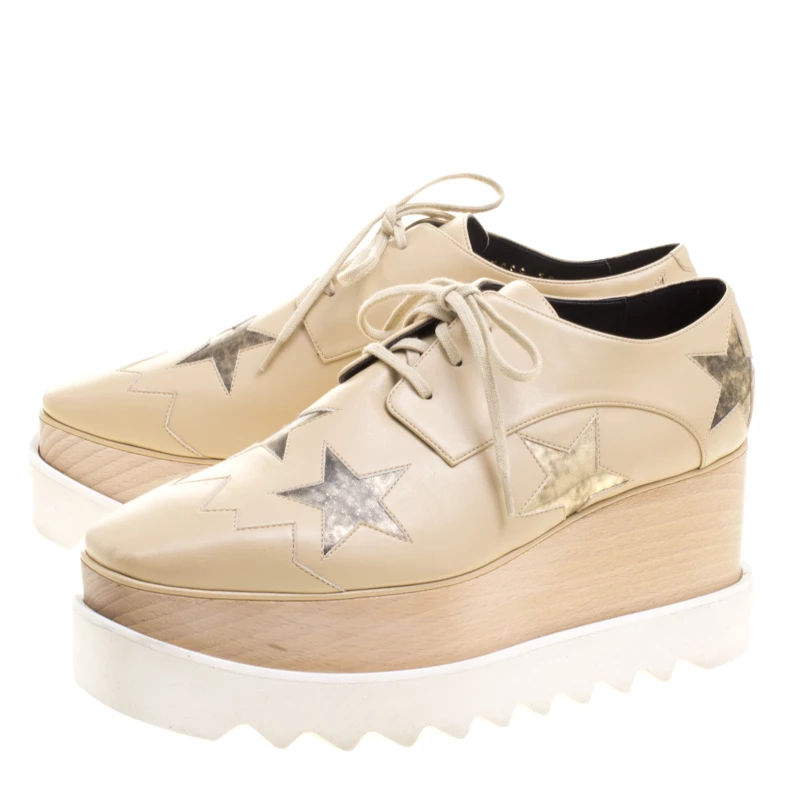 Stella McCartney proves her high style and unique fashion taste with these Elyse derby shoes. They are brimming with exquisite details like the star details on the faux leather exterior, the laces and the thick platforms. Grab this pair today and let it help you express your fabulous style.