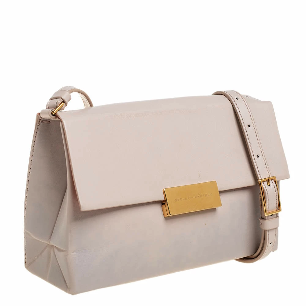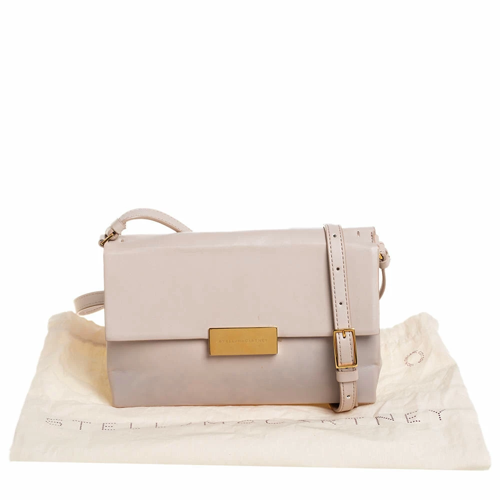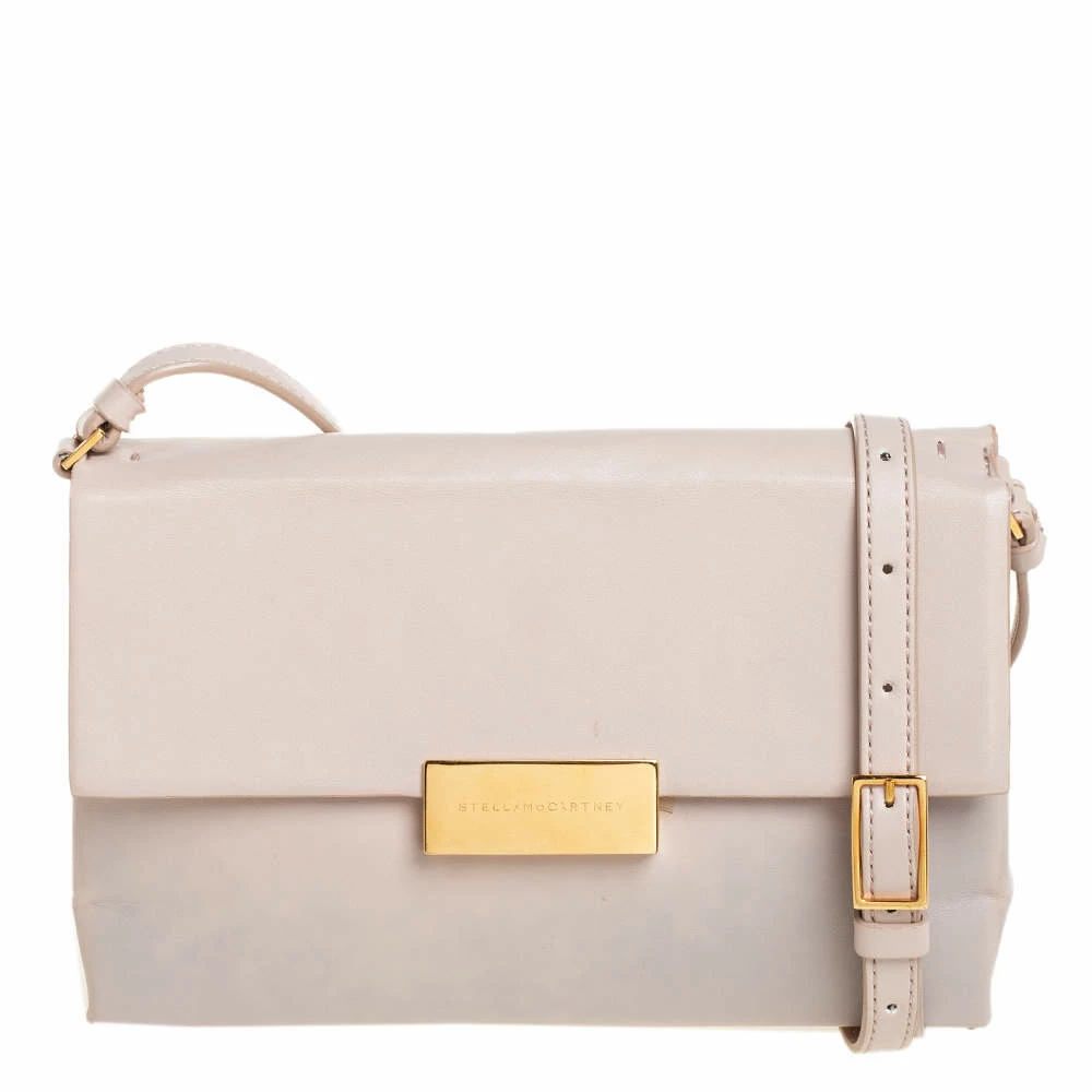 Make a wonderful appearance by adorning this plush bag by Stella McCartney. Crafted from faux leather, it comes in a lovely shade of beige. It features a metal lock, engraved with the brand label, on the front flap. The Alcantara-lined interior is sized to house your essentials. The bag is complete with an adjustable shoulder strap.