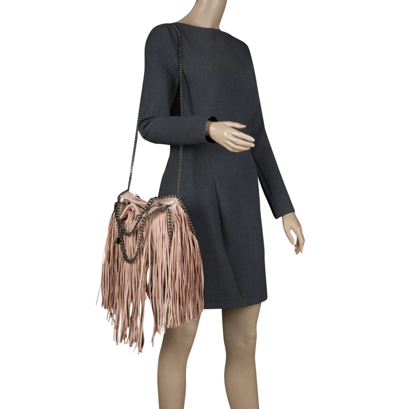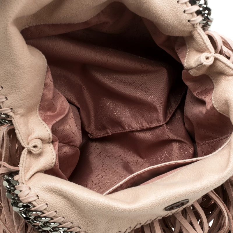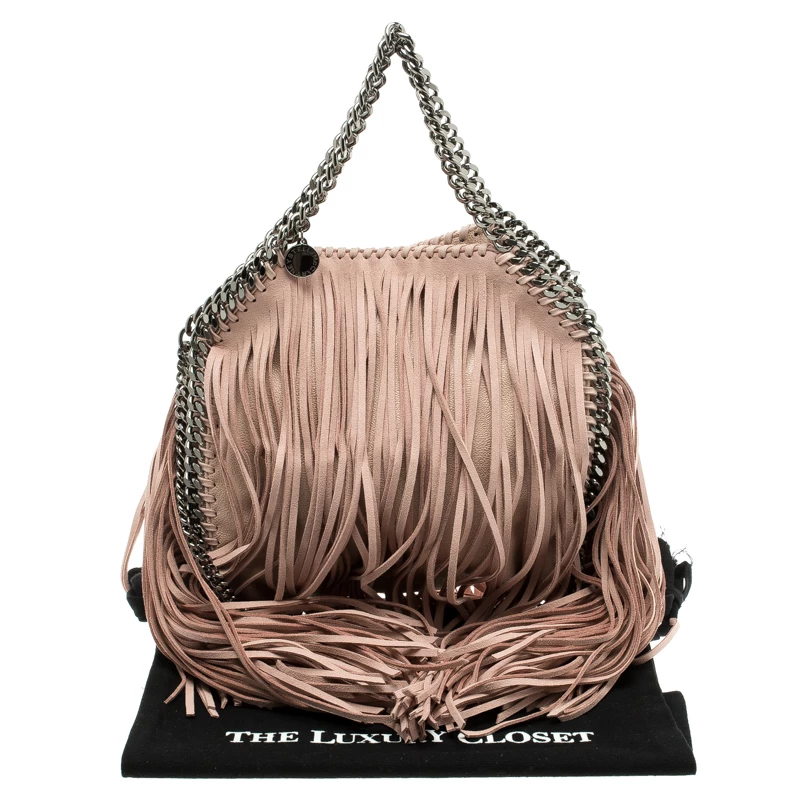 This handbag from Stella McCartney will make the dream of countless women come true. Crafted from faux leather, this Falabella bag has fringes wonderfully adorned on the exterior. While the chain detailing elevate its beauty, the fabric-lined interior will dutifully hold all your daily essentials. You’re sure to make hearts skip when you swing this tote using the chain handles.
