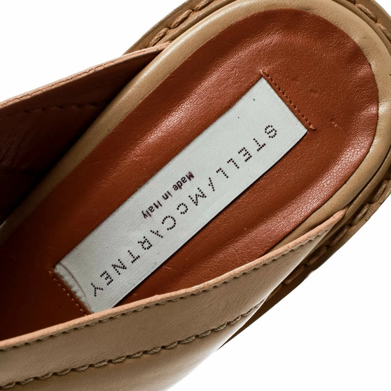 Go for a fresh and girly look while wearing these Stella McCartney slides. Made from beige faux leather, their feature criss-cross straps on the vamps. Lined with faux leather, their insoles are coupled with 11 cm marbled veneer block curved heels.