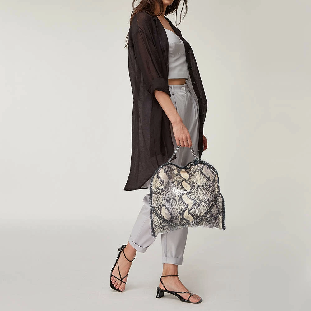 This Falabella shopper tote from Stella McCartney will make the dream of countless women come true. Crafted from faux python leather, it is durable and stylish. While the chain detailing elevate its beauty, the fabric-lined interior will dutifully hold all your daily essentials. You are sure to make hearts skip when you swing this tote using the chain handles.