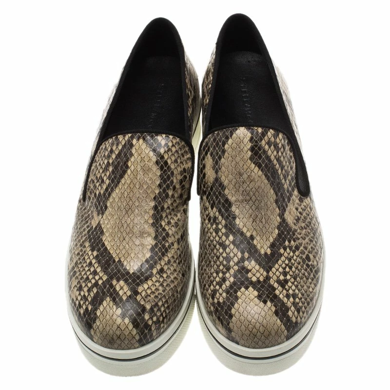 These python print sneakers by Stella McCartney are a whole new version of the famed slip-on sneakers. It flaunts a snakeskin print in contrast of the rubber sole in white favouring more height. Save these beige sneakers for your casual off-duty looks.