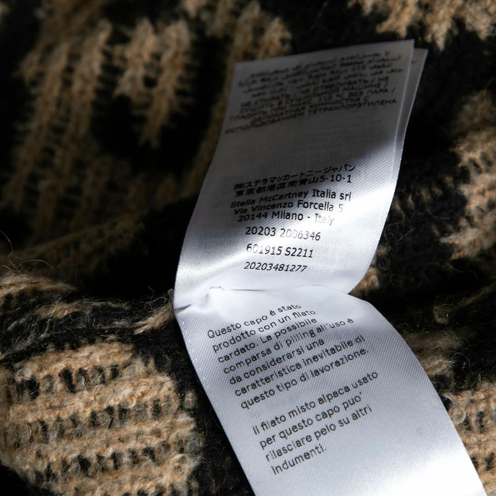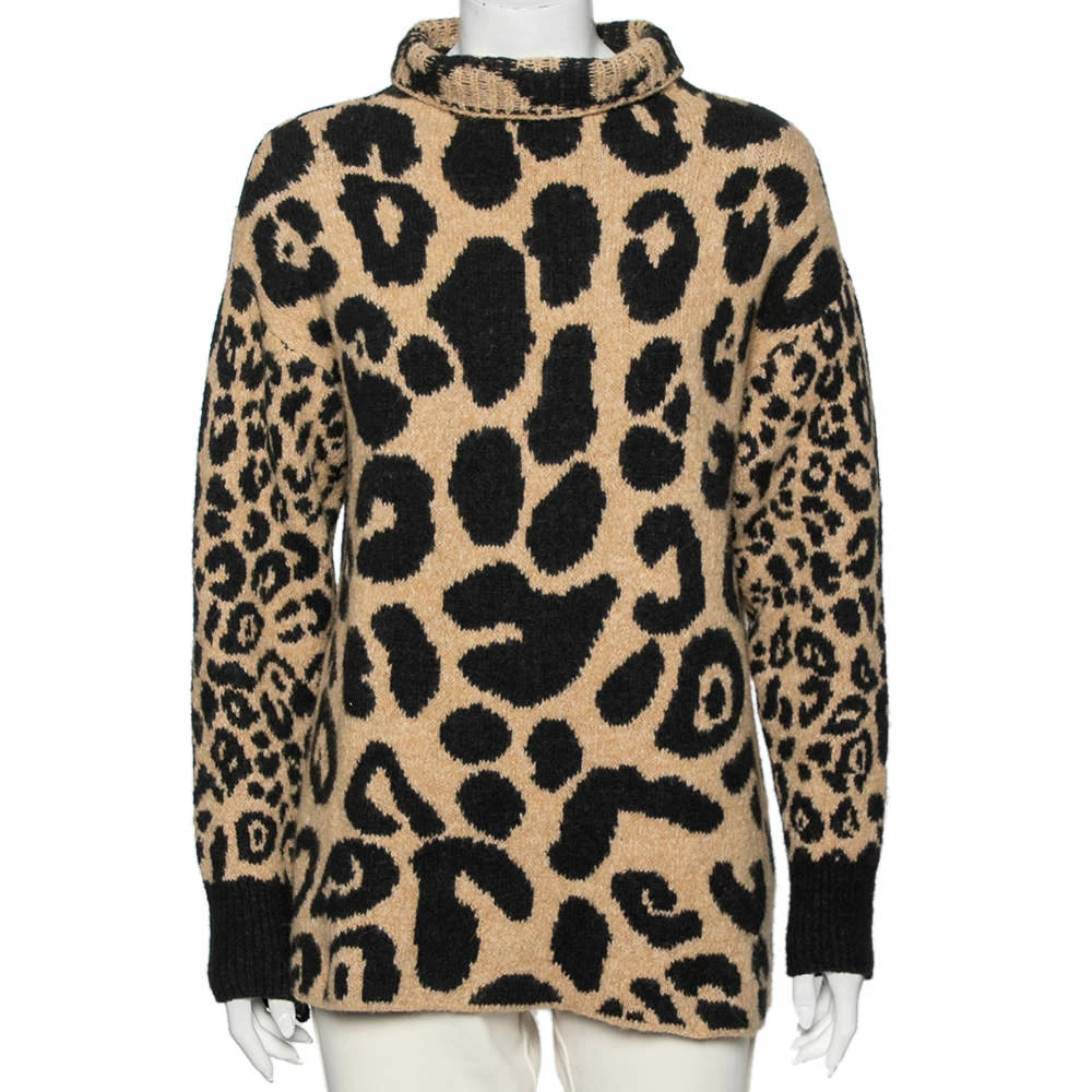 This beige women’s sweater from Stella McCartney is a perfect amalgamation of comfort and style. This intarsia knit creation in a cotton blend is highlighted with leopard prints. Pair this designer long-sleeved sweater with your favorite pants and boots!