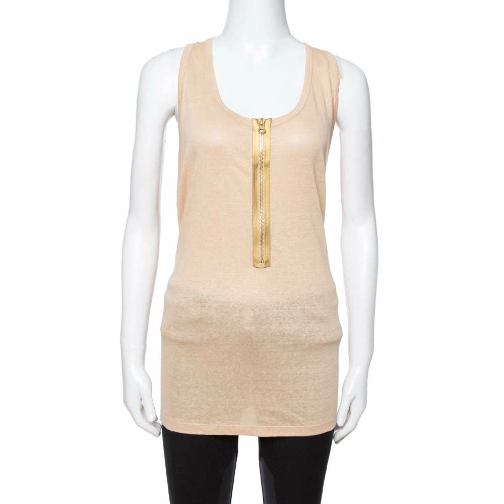 This tank top from Stella McCartney is a perfect blend of comfort and style! The beige creation is made of quality fabrics and features a zip detail to the front and a racerback style. Pair it with denim and ballet flats for a sunny day out.
