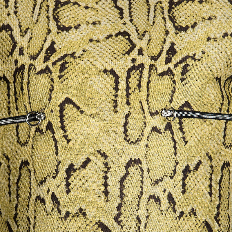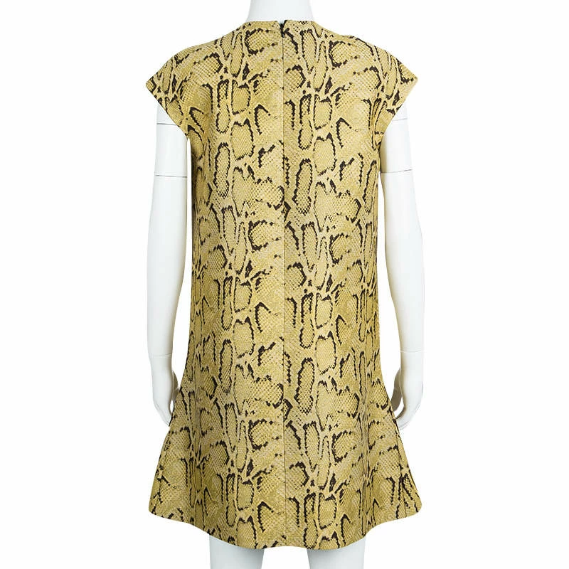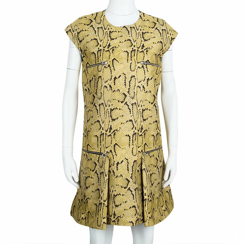 Designs from Stella McCartney are closet-worthy as they bring in loads of style and high fashion. This dress, for example, is stunning in appeal and design. It carries zip pockets, a back closure and snakeskin effect in jacquard flaunted all over. You can rock the dress with gold pointed toe pumps.