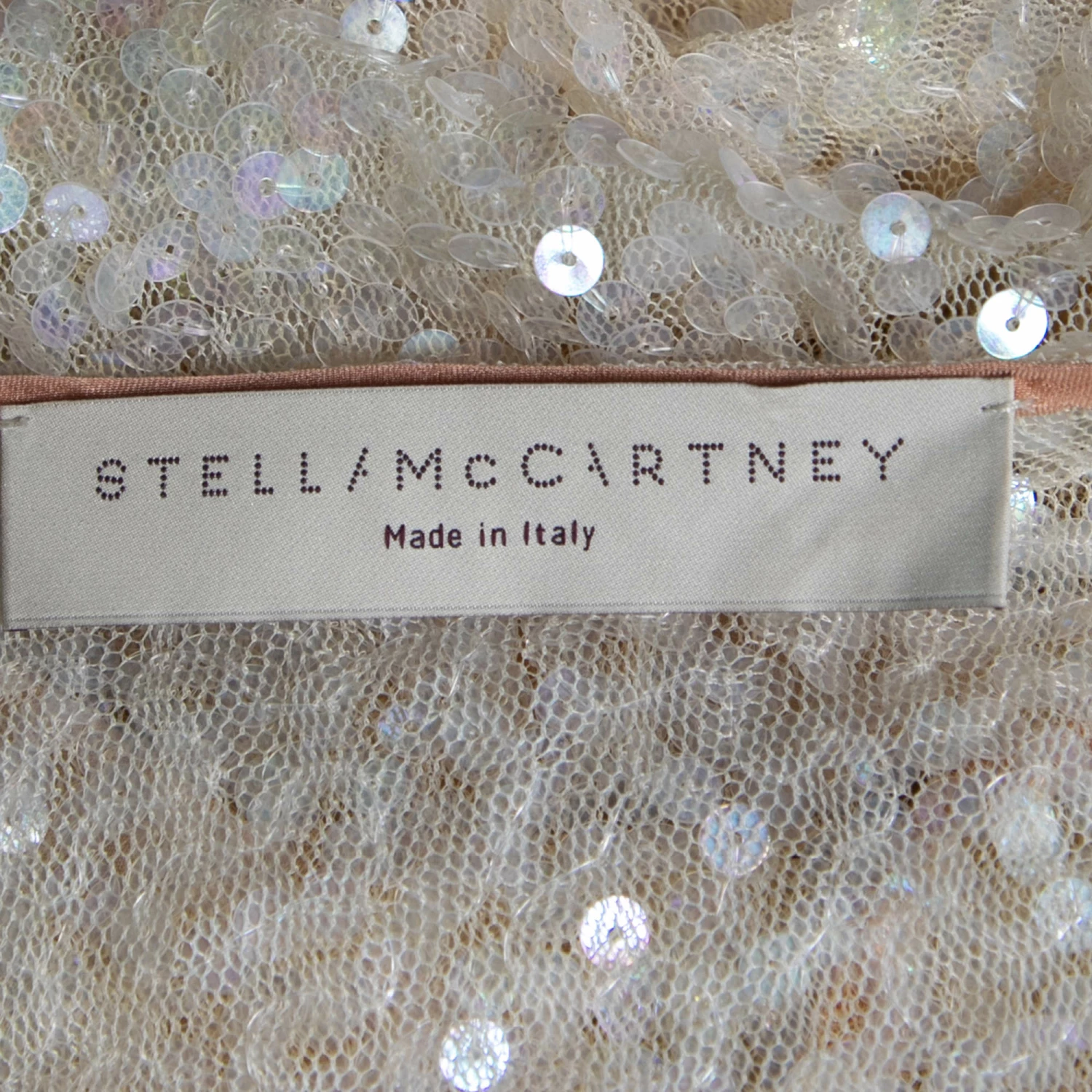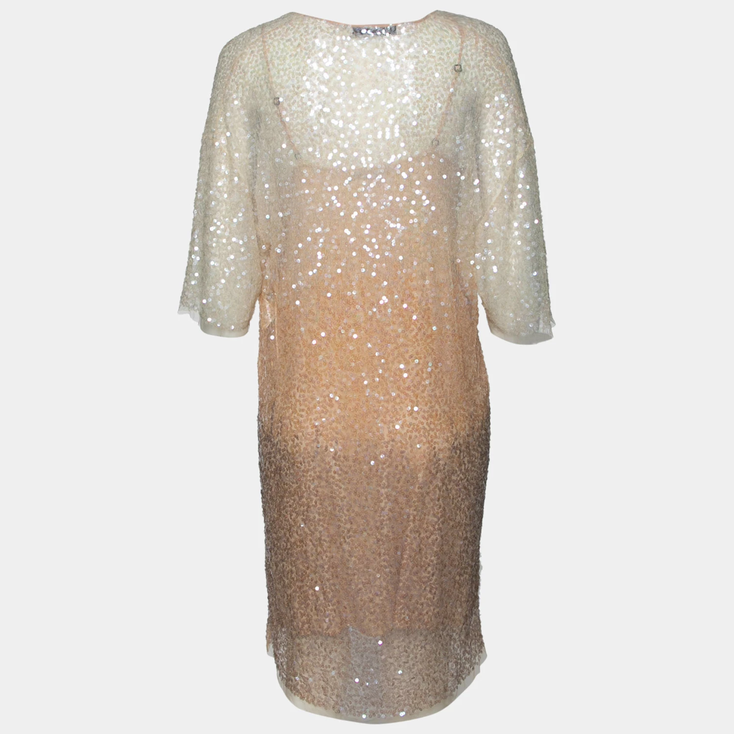 Elevated with sequin embellishments, this Stella McCartney dress will be a valuable addition to your closet. Crafted from a mix of quality materials in a striking beige ombre hue, it features short sleeves, a fine neckline, and a comfortable fit. Team it up with heels for your next evening outing.