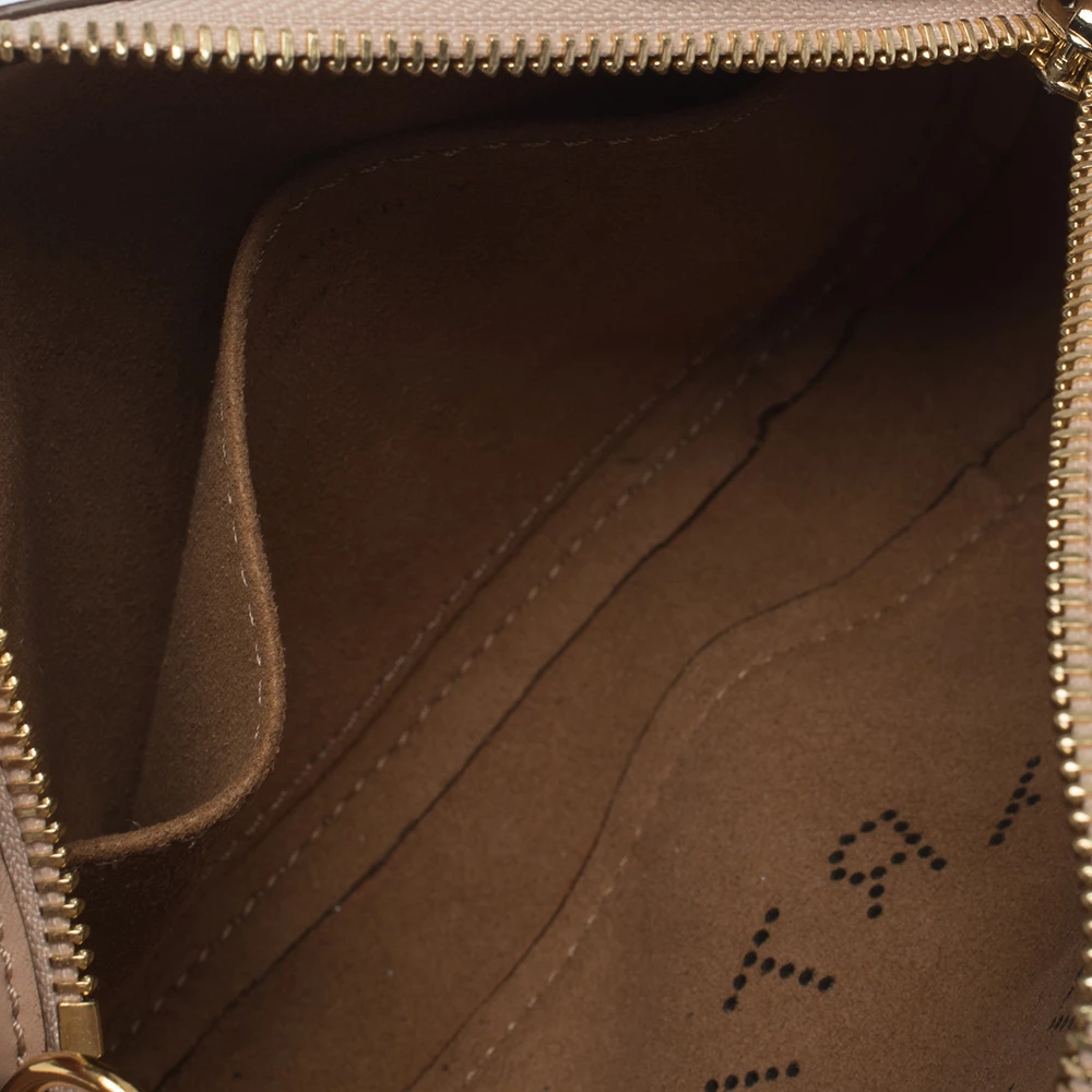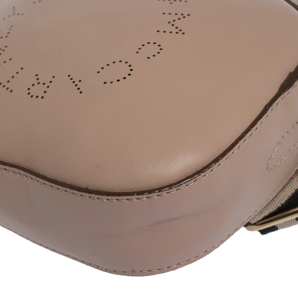 The Stella McCartney Vegetarian bag has been exquisitely crafted from beige faux leather featuring the signature logo in a perforated style at the front and is equipped with a suede interior. The printed belt is provided for you to style the piece as a waist bag.