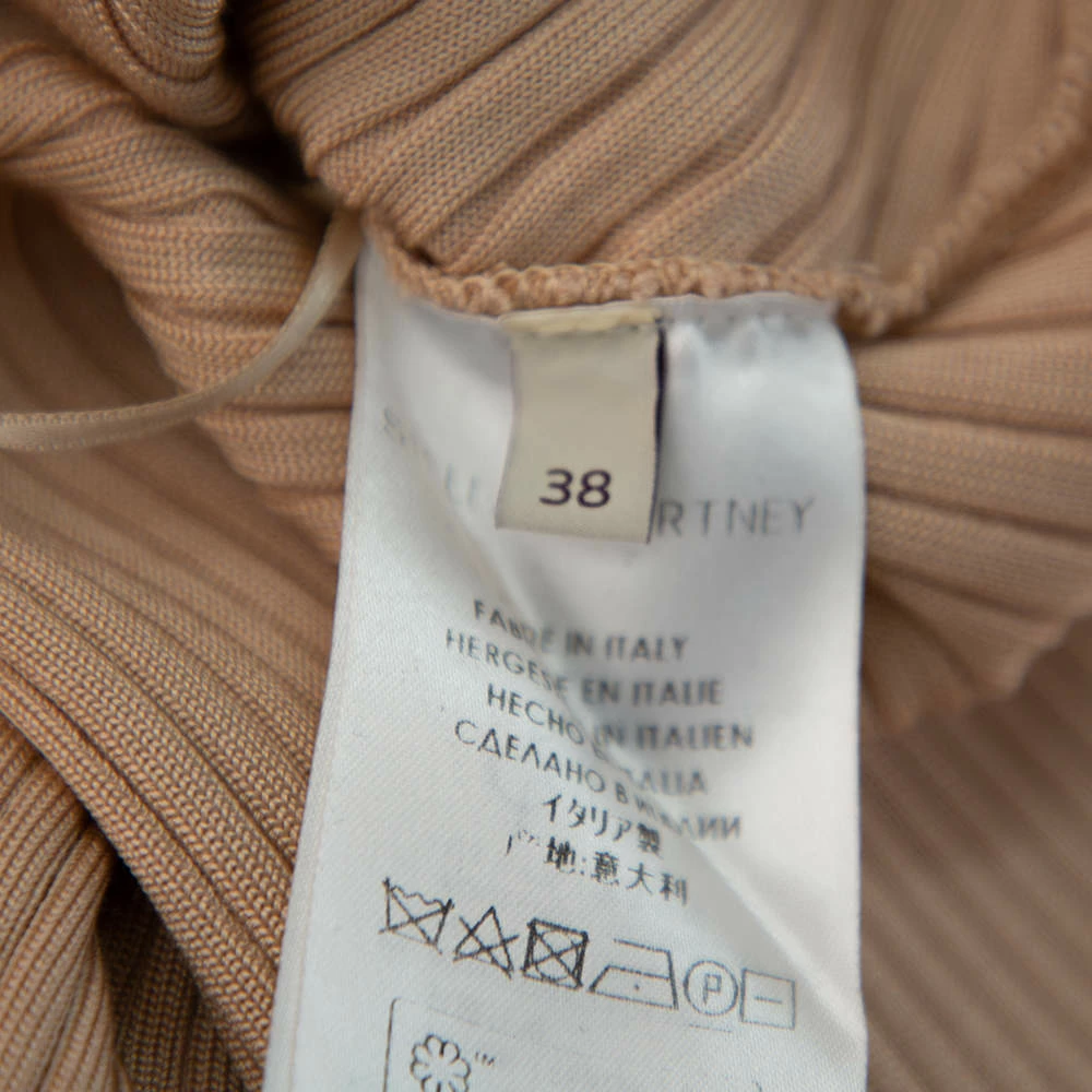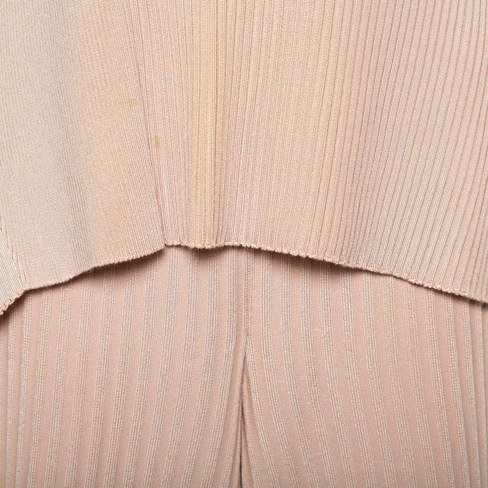 Exhibiting a sophisticated design, this beige Stella McCartney top and pants set is a wardrobe staple. It is made of a blend of fabrics and features a rib-knit design. The sleeveless top, as well as the pants, have a flared silhouette, making them perfect pals for lounging around in comfort, without compromising on style!