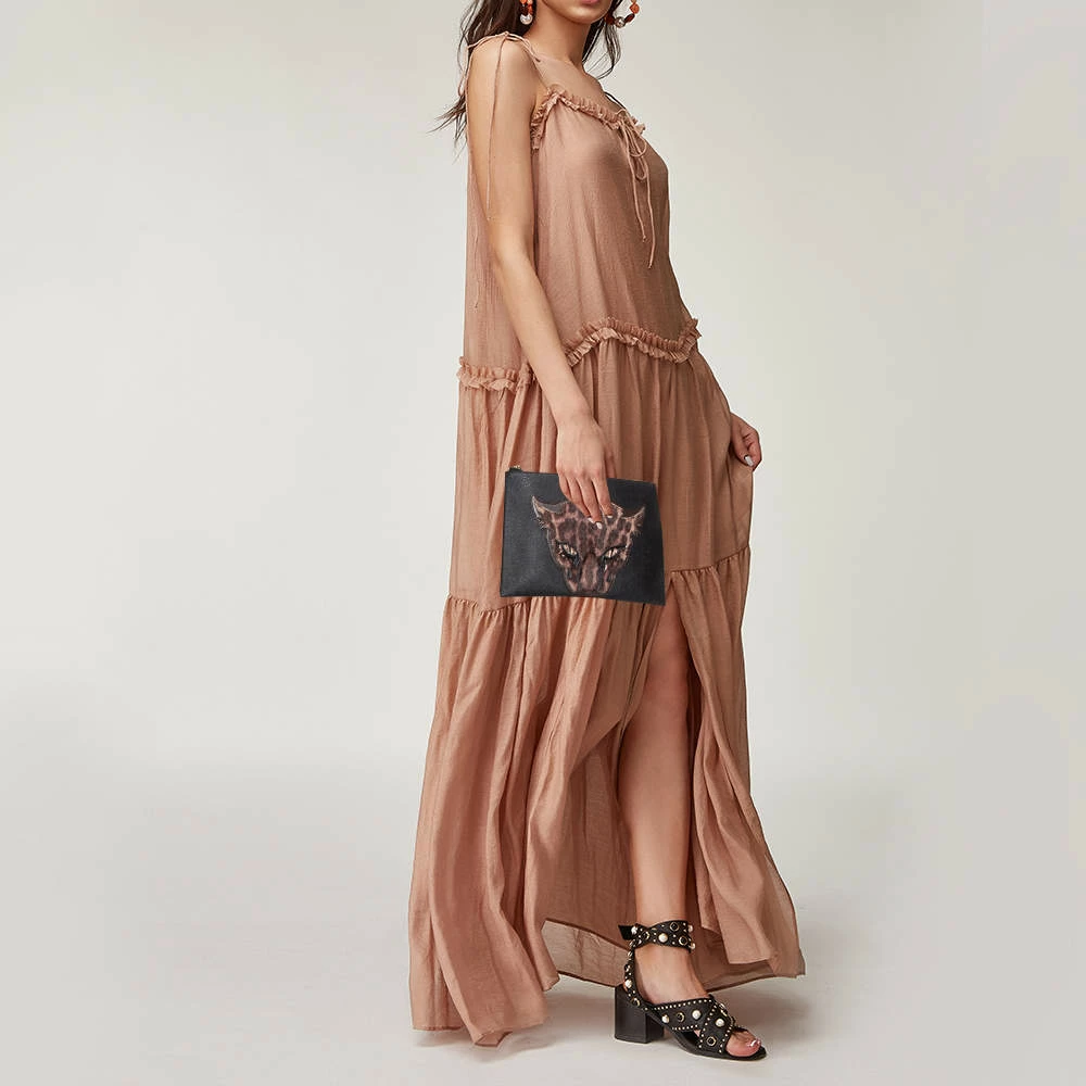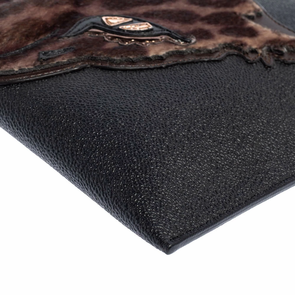 This stylish clutch from the house of Stella McCartney has been crafted from faux leather in a simple black shade. It has a calf-hair leopard patch on the front for a distinct update. The women’s designer clutch is complete with a lined interior to hold your essentials.