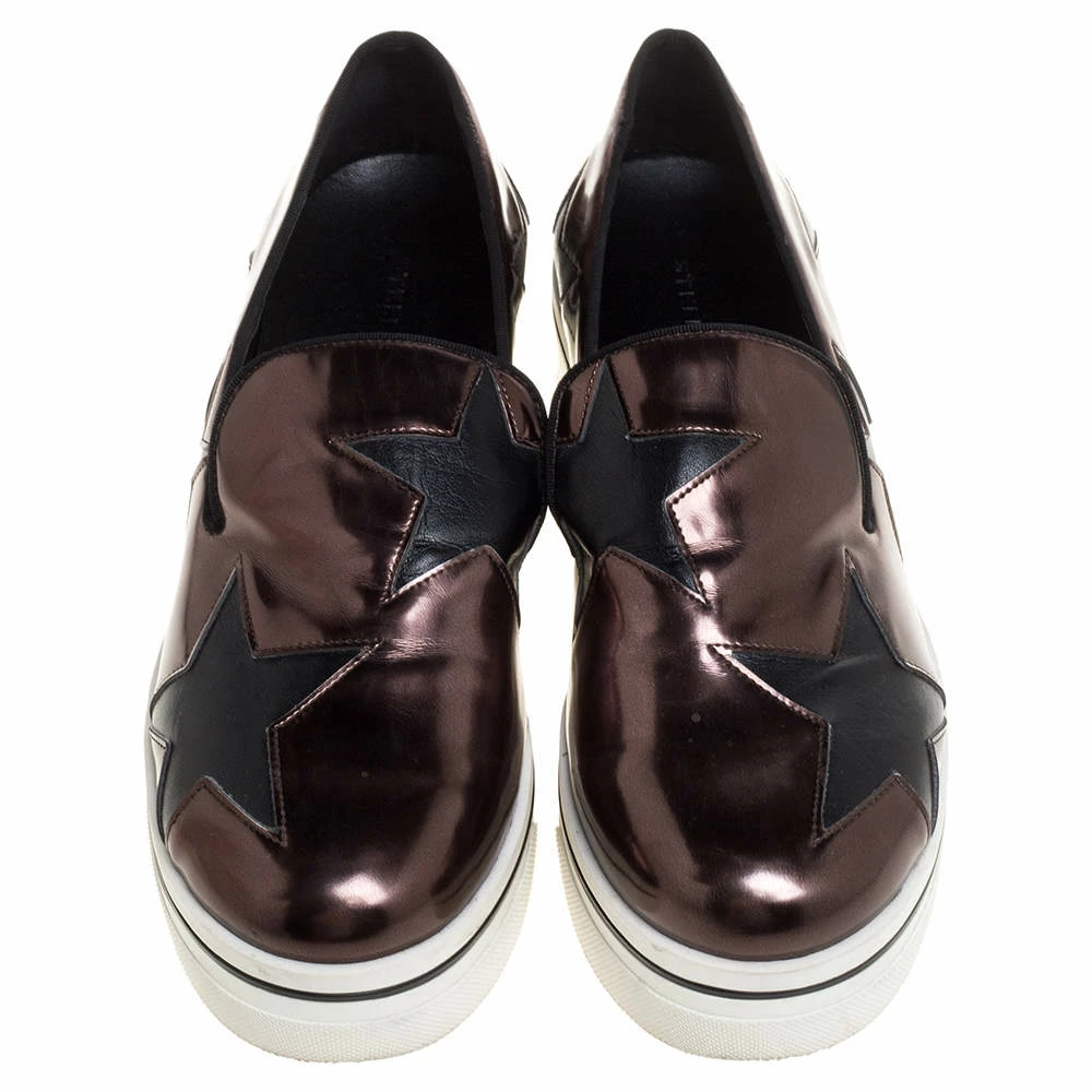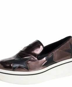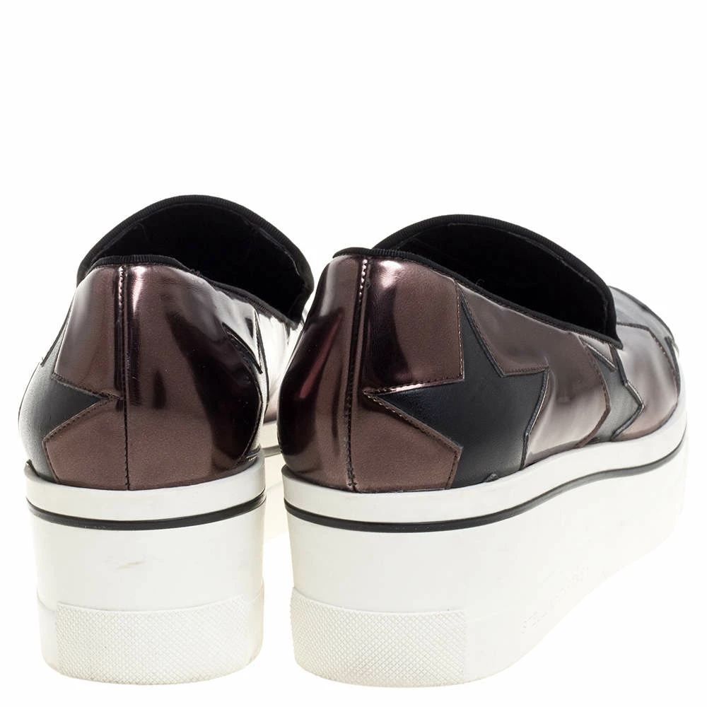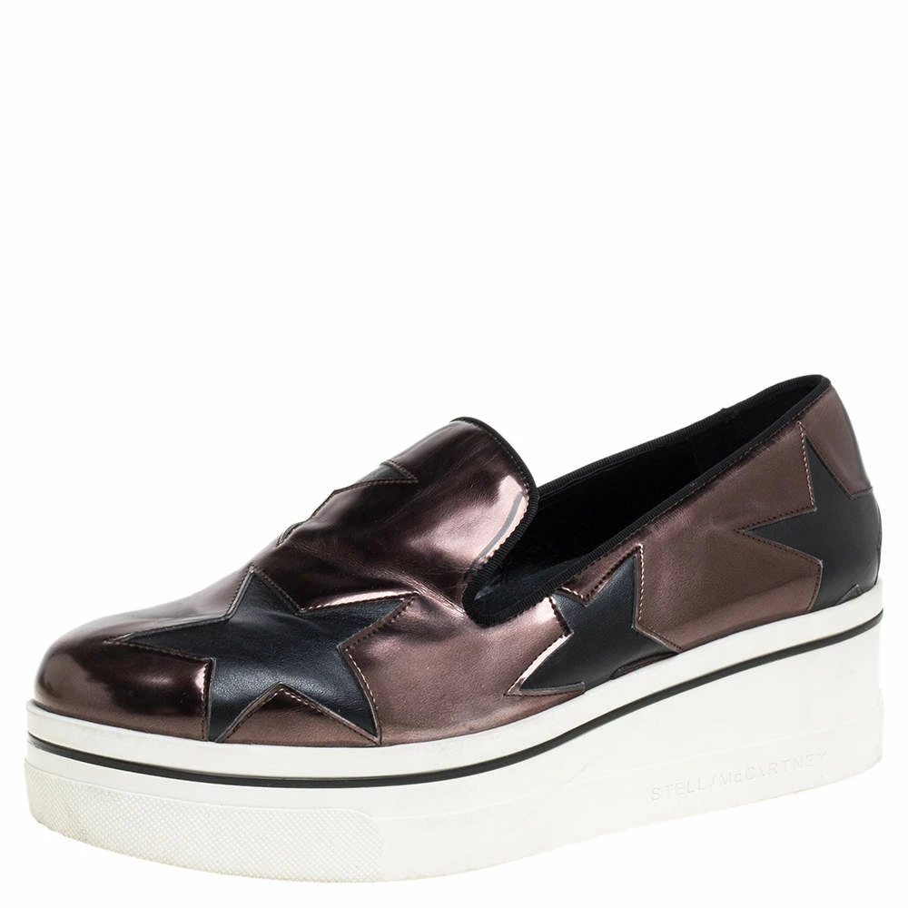 These Binx sneakers from Stella McCartney are effortlessly chic and stylish. The black and brown sneakers have been crafted from faux leather and textured fabric and styled with round toes and star-shaped cut-outs all over. They come equipped with comfortable faux leather insoles and are elevated on rubber platforms.