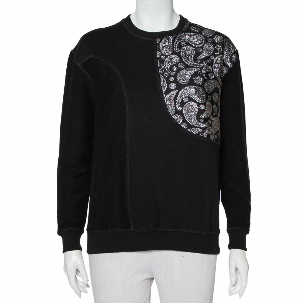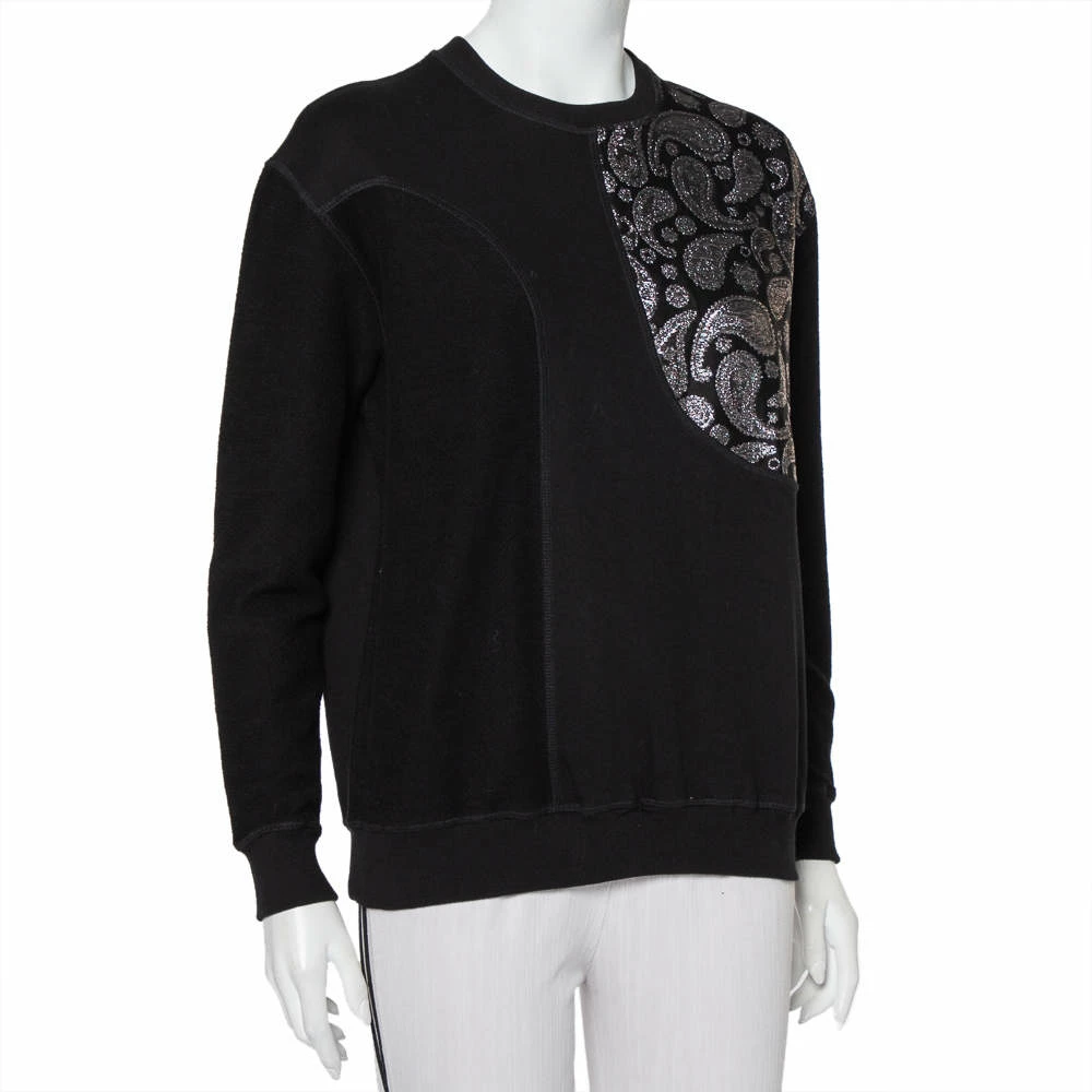 Don’t compromise on comfort for style anymore! Thanks to this Stella McCartney sweatshirt that features an eye-pleasing paisley jacquard panel on the front. It has long sleeves and a classic black hue. Wear it with bike shorts.