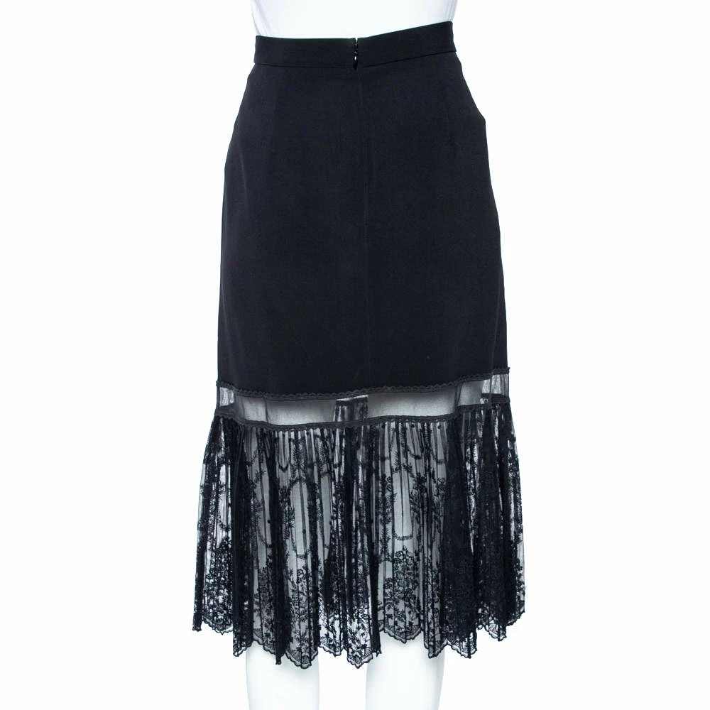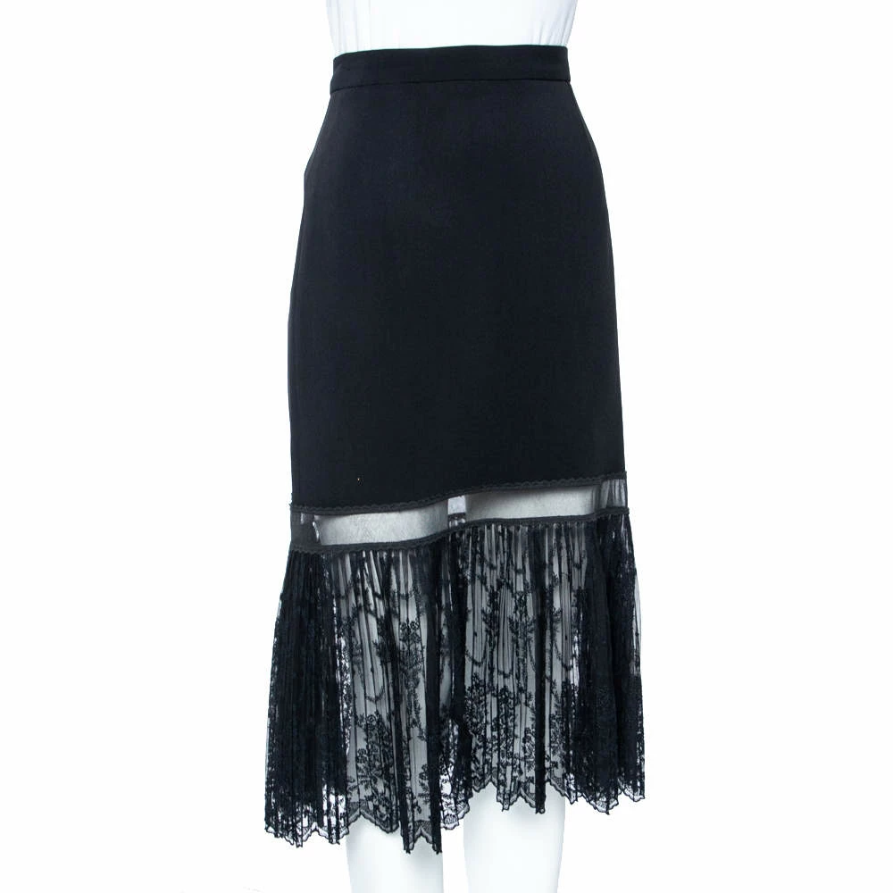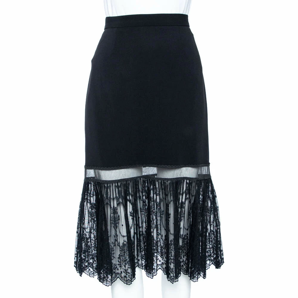 From the House of Stella McCartney, here is a creation that will grant nothing but finesse and delicacy to your appearance. This skirt is tailored using black crepe fabric, which is decorated with intricate lace trims. For closure, this skirt is provided with a zip-type closure.