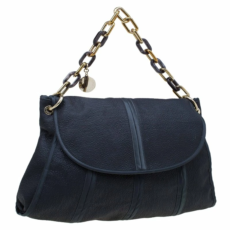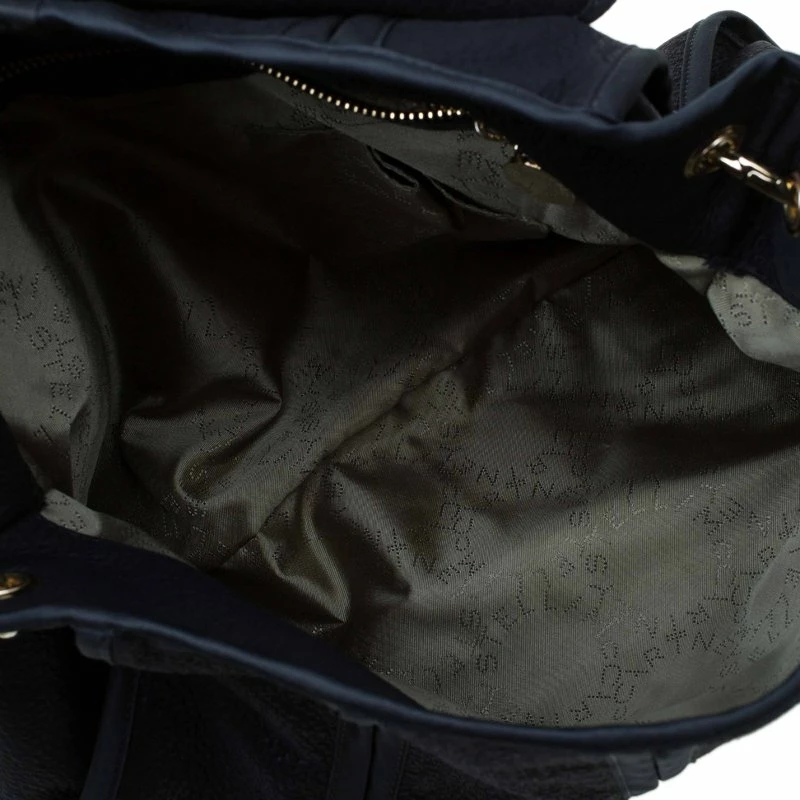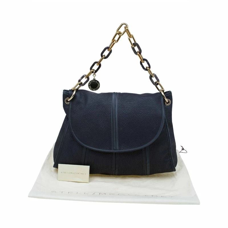 This Stella McCartney shoulder bag is sleek and fashionable. Made from black fabric with leather trim and tonal stitching, it features a chain-link handle with gold-tone logo charm. Punctuated with logo-engraved, gold-tone hardware, it is designed with a flap that opens to a spacious compartment for all your essentials.