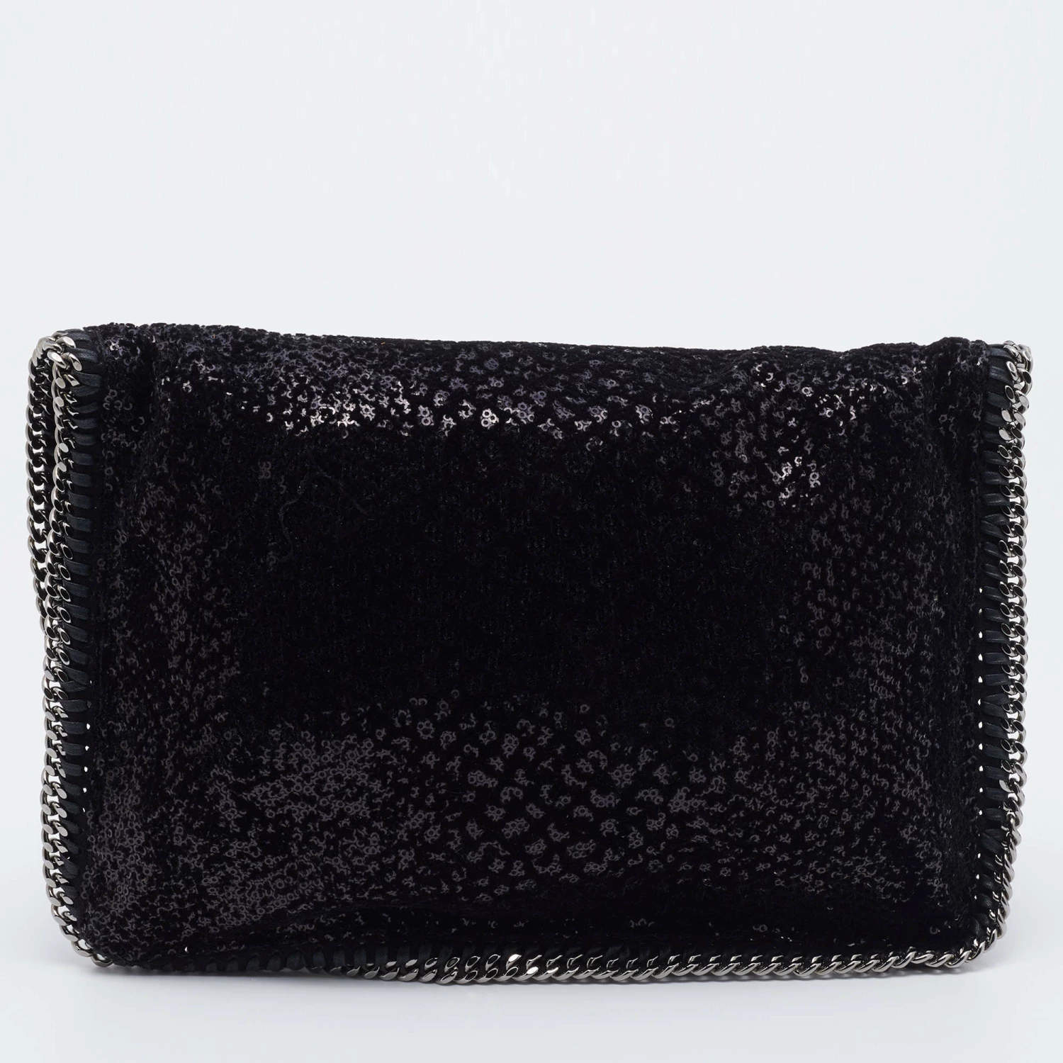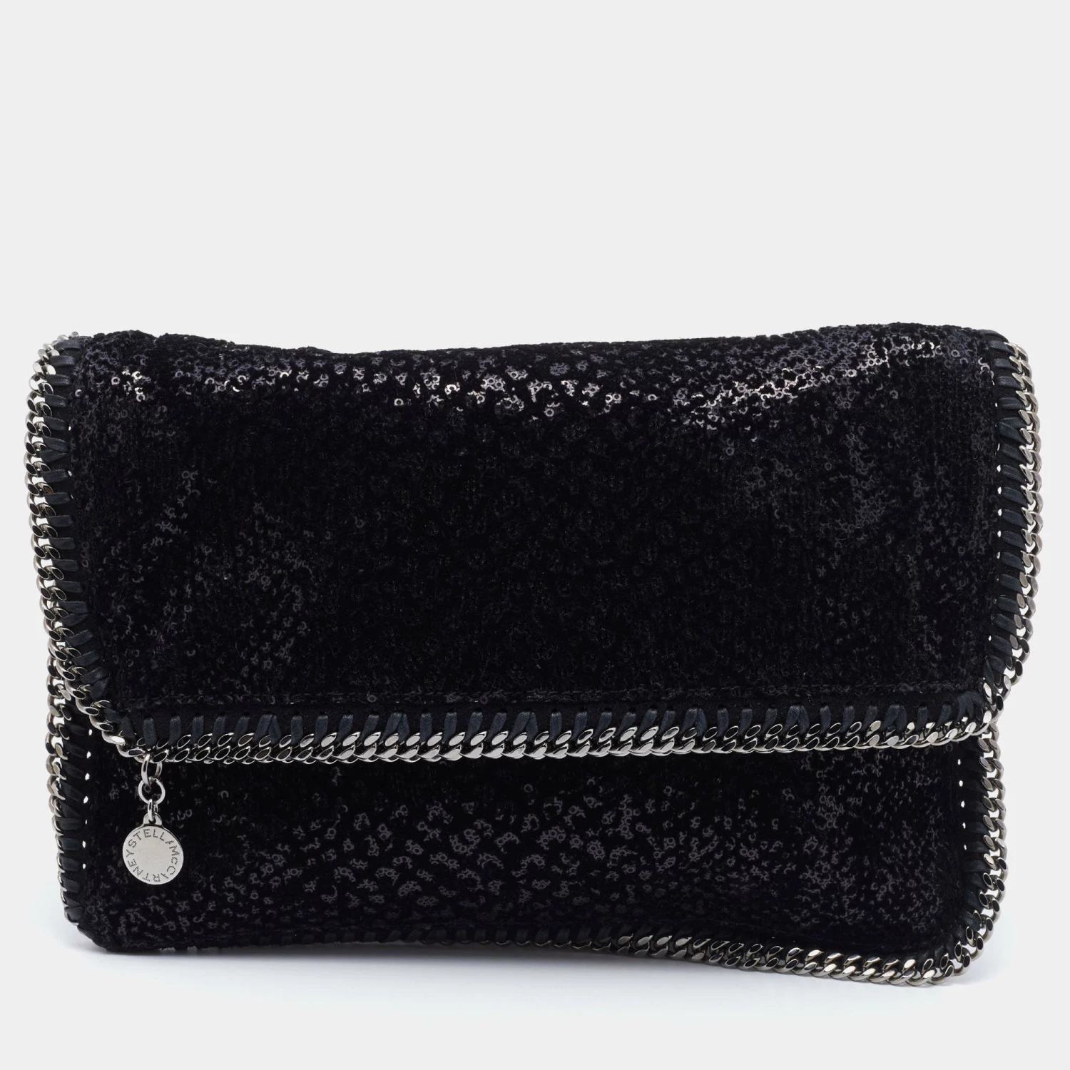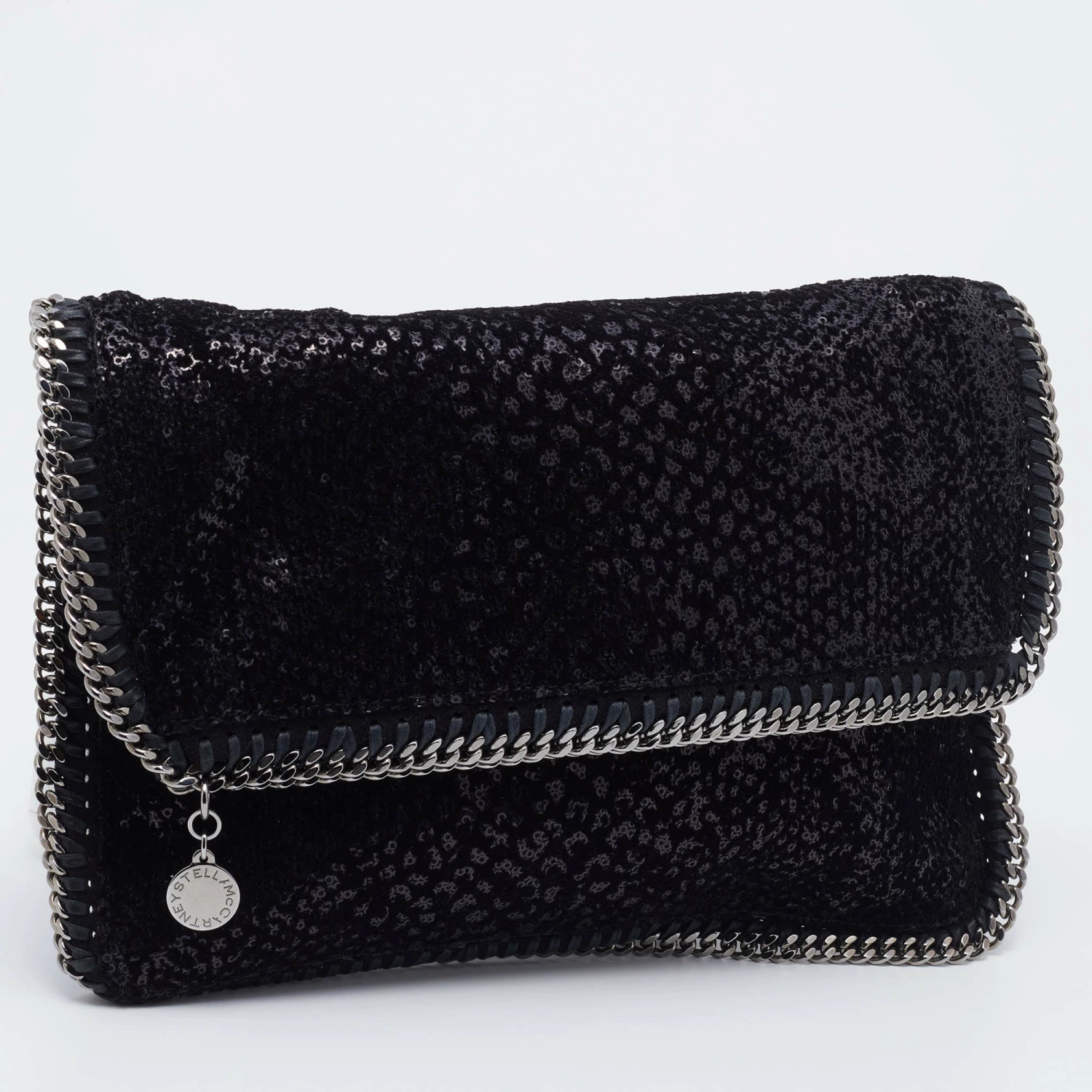 The chain whipstitch detailing beautifully outlines this Stella McCartney Flabella clutch. Crafted from sequins, it is adorned with silver-tone accents, and the bag is classy in a black shade. The fabric-lined interior of this clutch can safely store your party essentials.