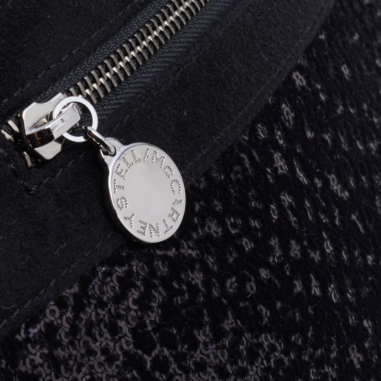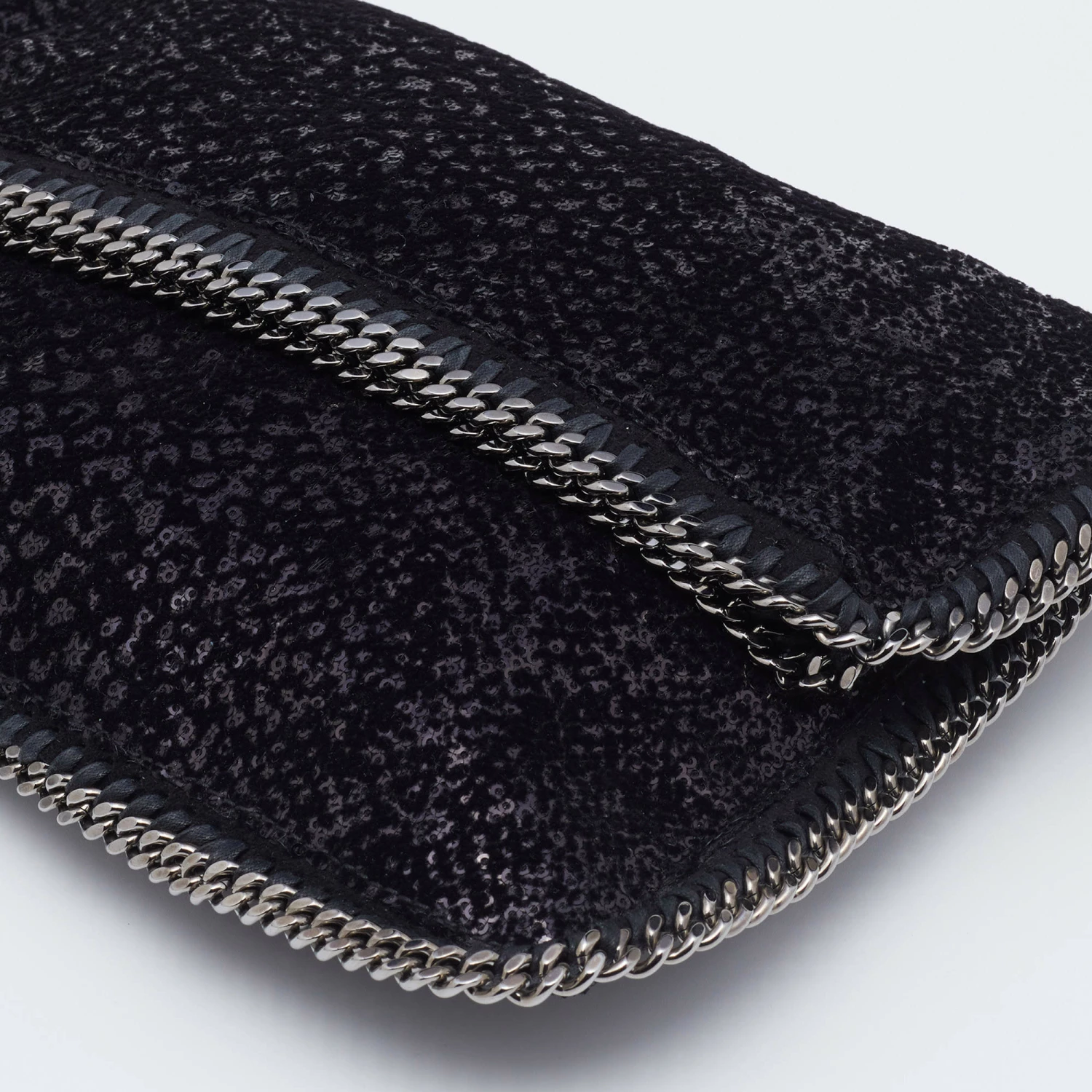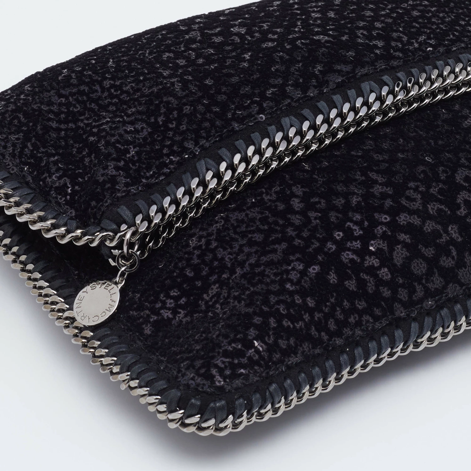 The chain whipstitch detailing beautifully outlines this Stella McCartney Flabella clutch. Crafted from sequins, it is adorned with silver-tone accents, and the bag is classy in a black shade. The fabric-lined interior of this clutch can safely store your party essentials.