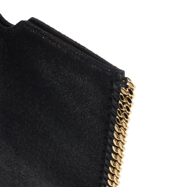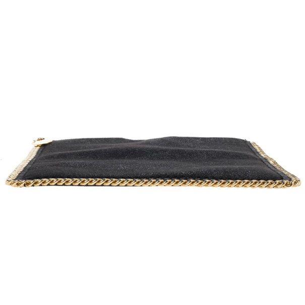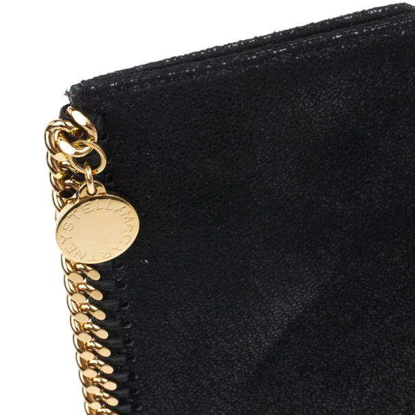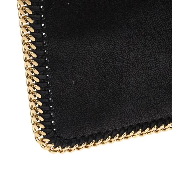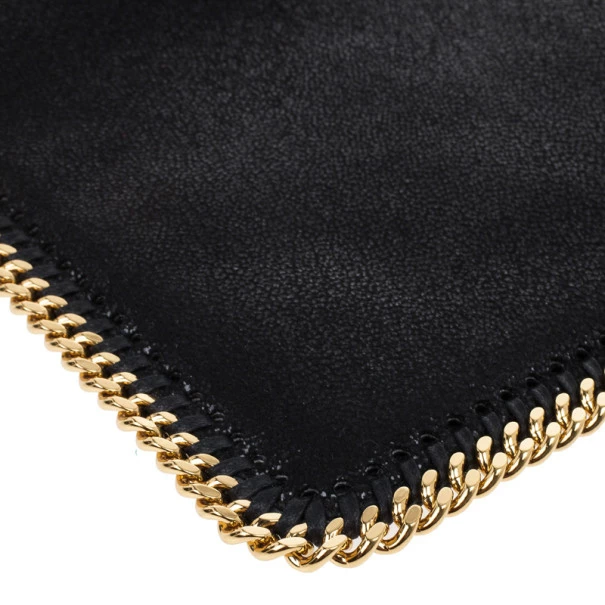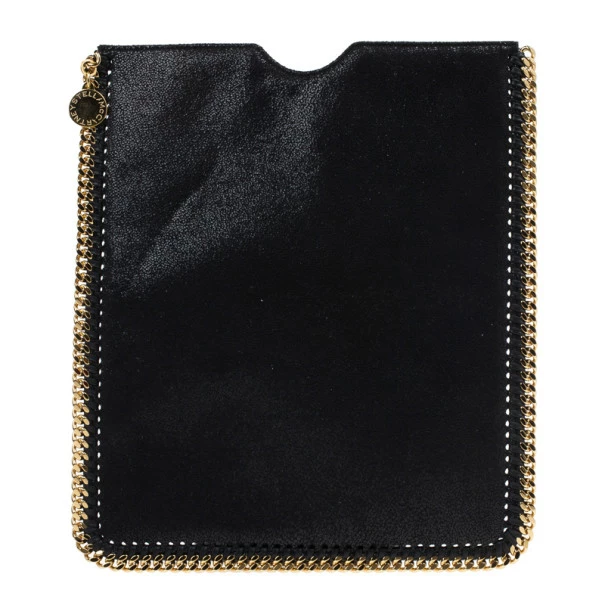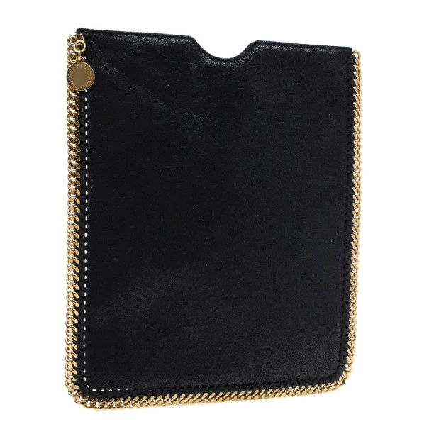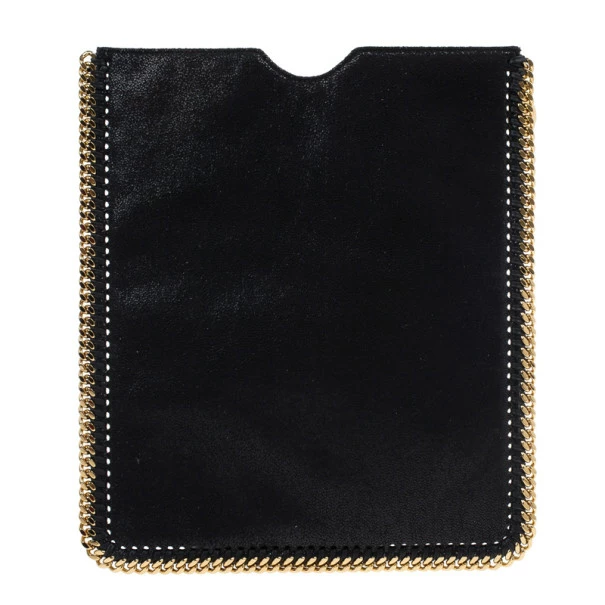 Part of the signature Falabella collection, this Stella McCartney iPad case will protect your tablet and keep it handy. Made from faux leather, its smooth suede-like exterior and black color are coupled with gold-tone chain stitched to the sides of the case. It is coupled with a Stella McCartney metal logo disc charm at the top.Original Retail Price: US $400