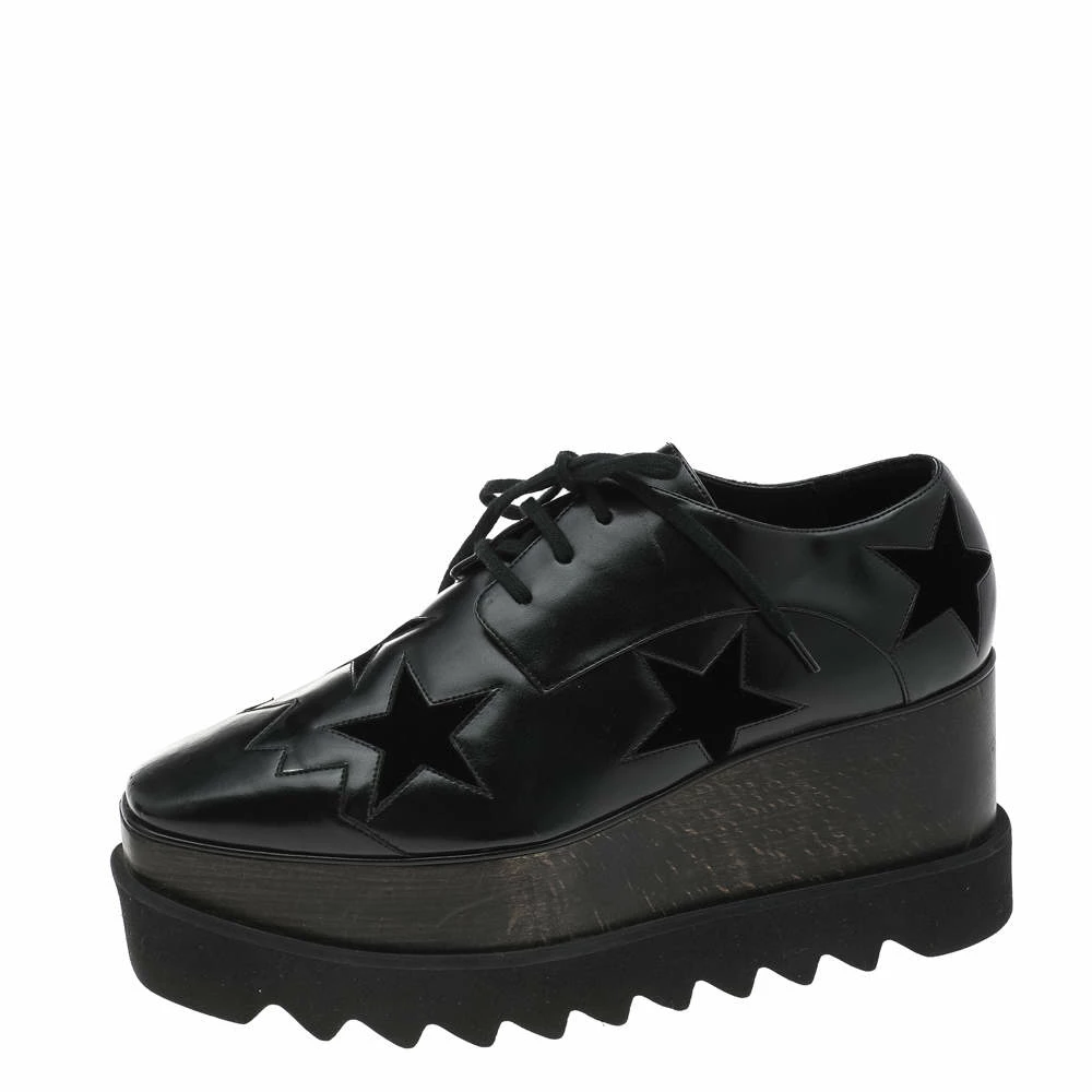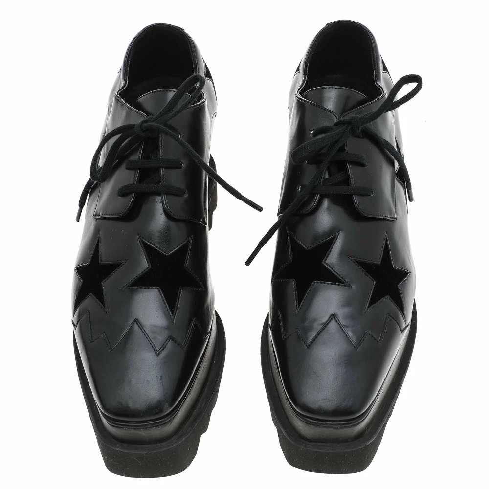 The House of Stella McCartney exudes high style and unique fashion taste with these Elyse Derby shoes. They are brimming with exquisite details like the black faux leather and velvet exterior and Star prints. They come with lace-ups and thick platforms. Grab these Derbies today and express your fabulous style!