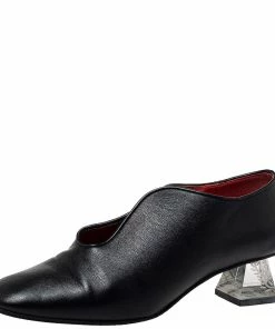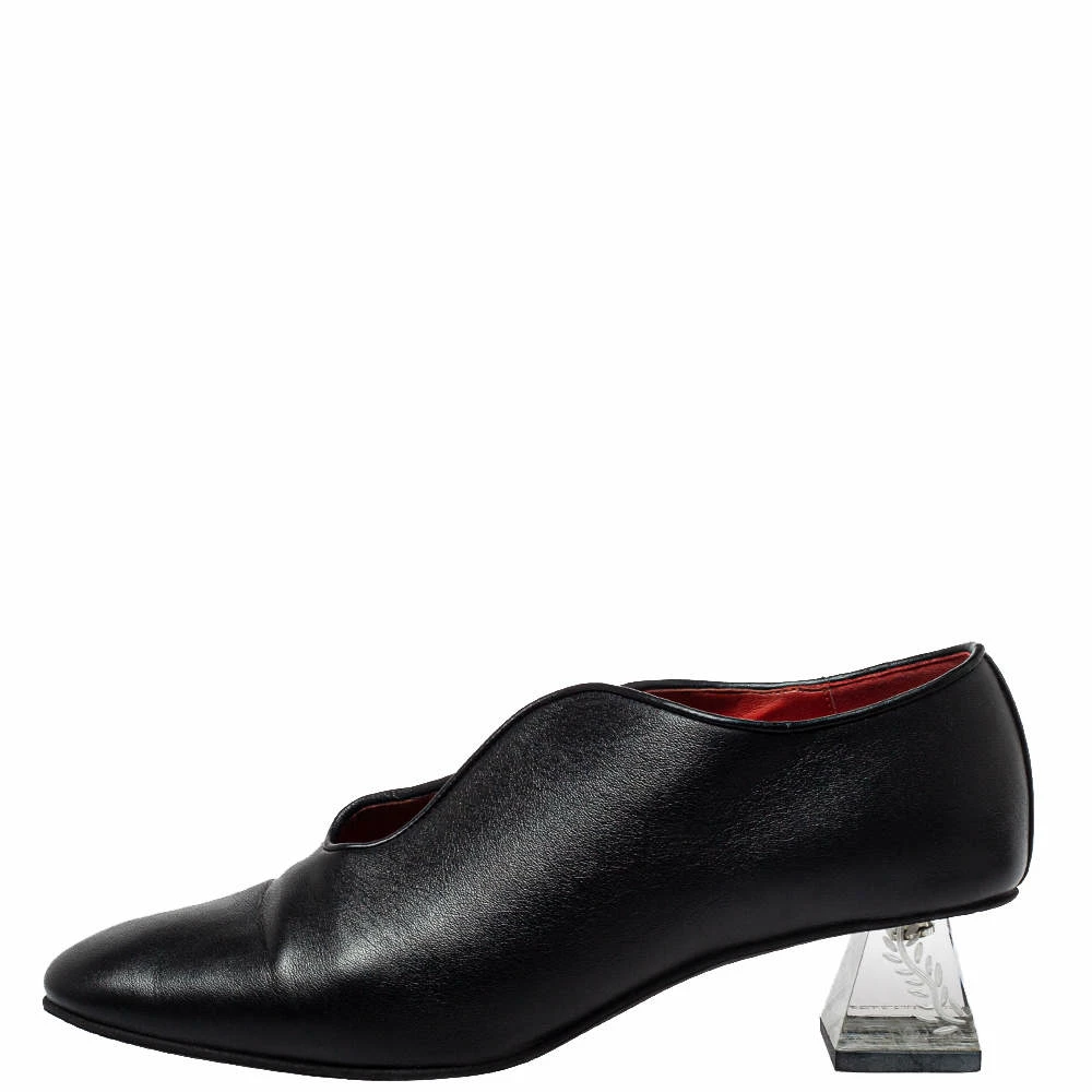 Chic, sleek, and unique, these Stella McCartney pumps are all you need to amp up your ensemble. Crafted from ethically sourced faux leather in a black shade, they feature a curvy upper forming almond-toes. These pumps are set on sculptural block heels for a defined look.