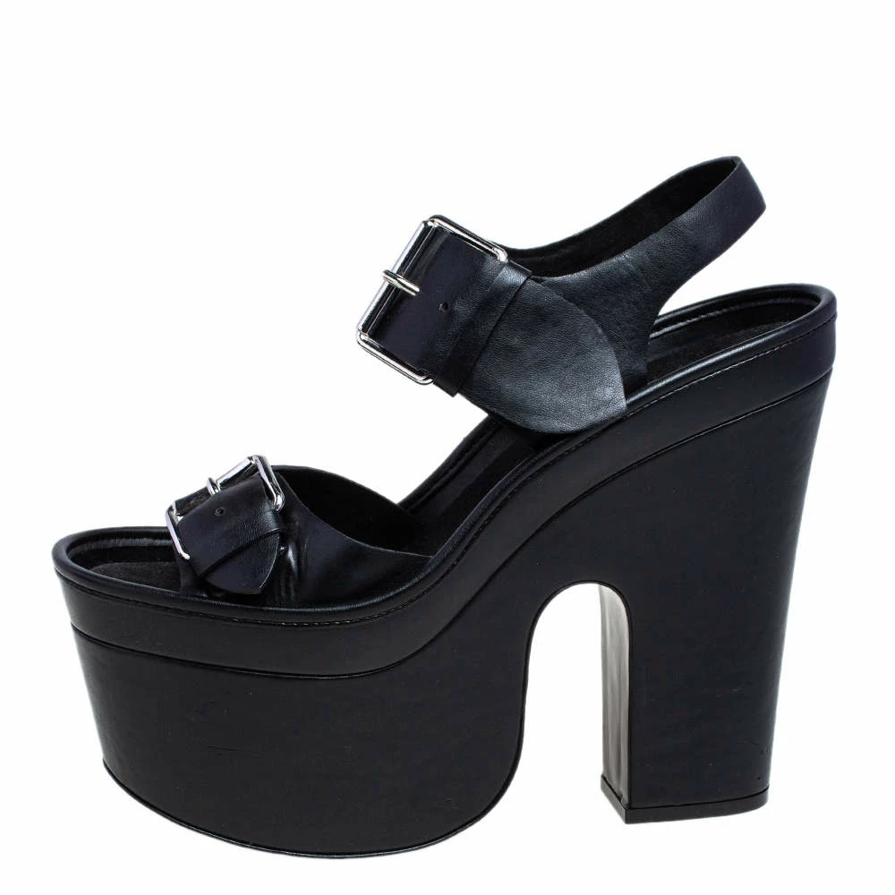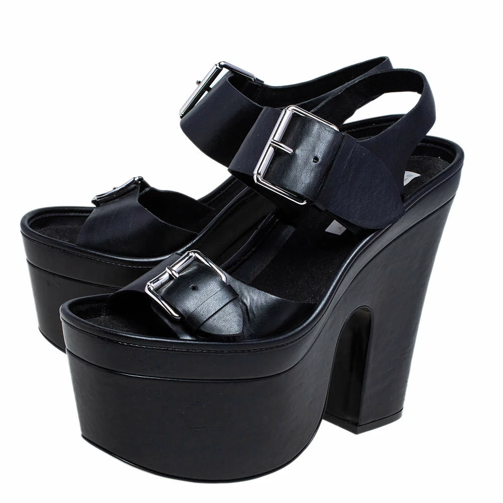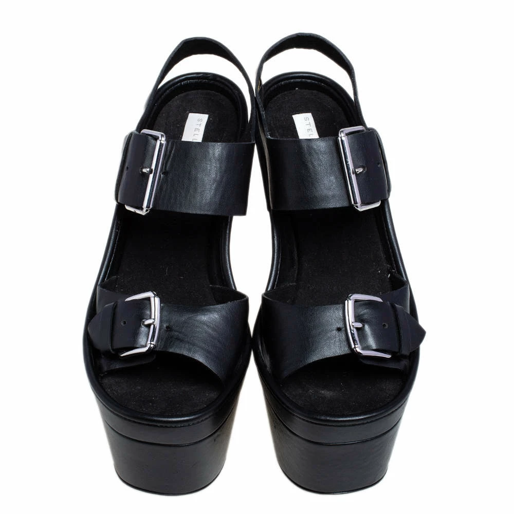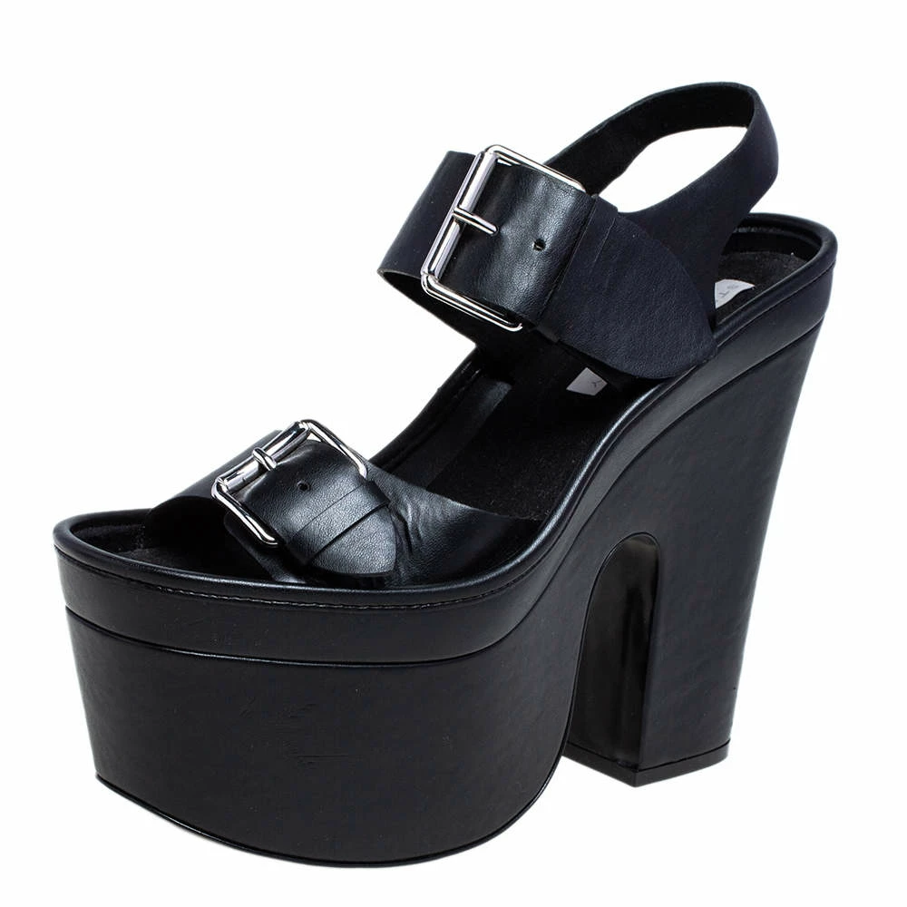 You are sure to feel your stylish best every time you step out in these sandals from Stella McCartney! Beautifully designed with faux leather, they present a gorgeous appeal. The black pair carries open toes, buckled straps, platforms, and block heels. These sandals are perfect for the edgy fashionista in you!