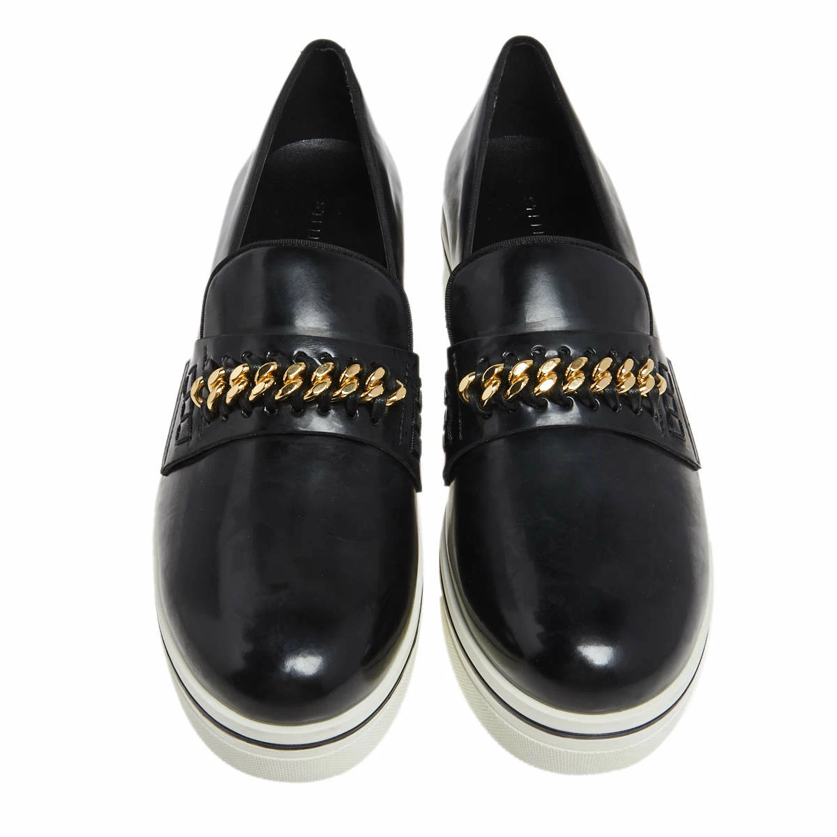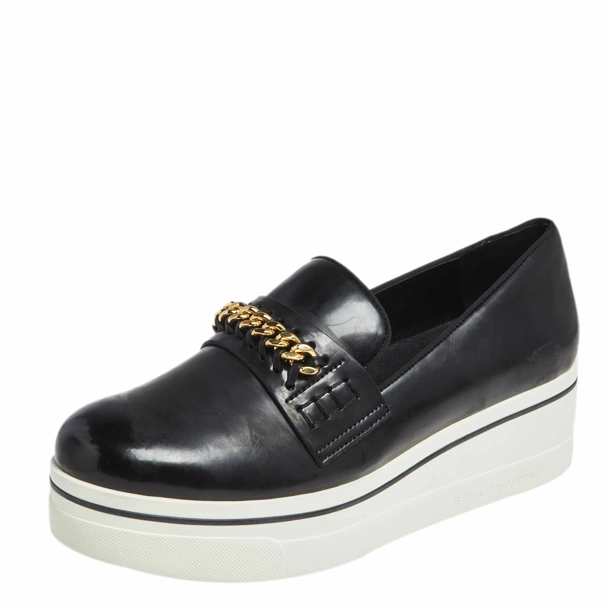 To accompany your attires with ease, Stella McCartney brings you this pair of sneakers that speak nothing but high style. They’ve been crafted from faux leather and designed with chain-link on the vamps. The comfortable sneakers are easy to slip on and they are elevated on platforms.