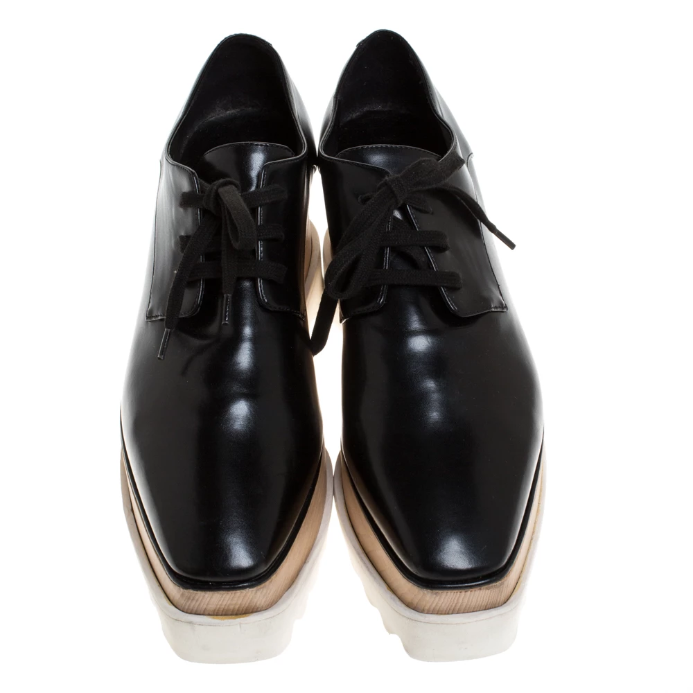 Stella McCartney exudes her high style and unique fashion taste with these Elyse shoes. They are brimming with exquisite details like the black faux leather exterior, the laces, and the thick platforms. Grab this pair today and let it help you express your fabulous style.