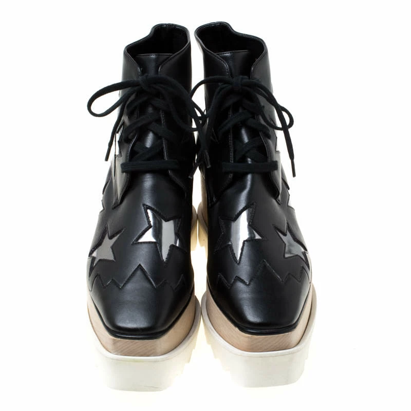 Stella McCartney exudes their high style and unique fashion taste with these Elyse booties. They are brimming with exquisite details like the star details on the faux leather exterior, the laces, and the thick platforms. Grab this pair today and let it help you express your fabulous style.