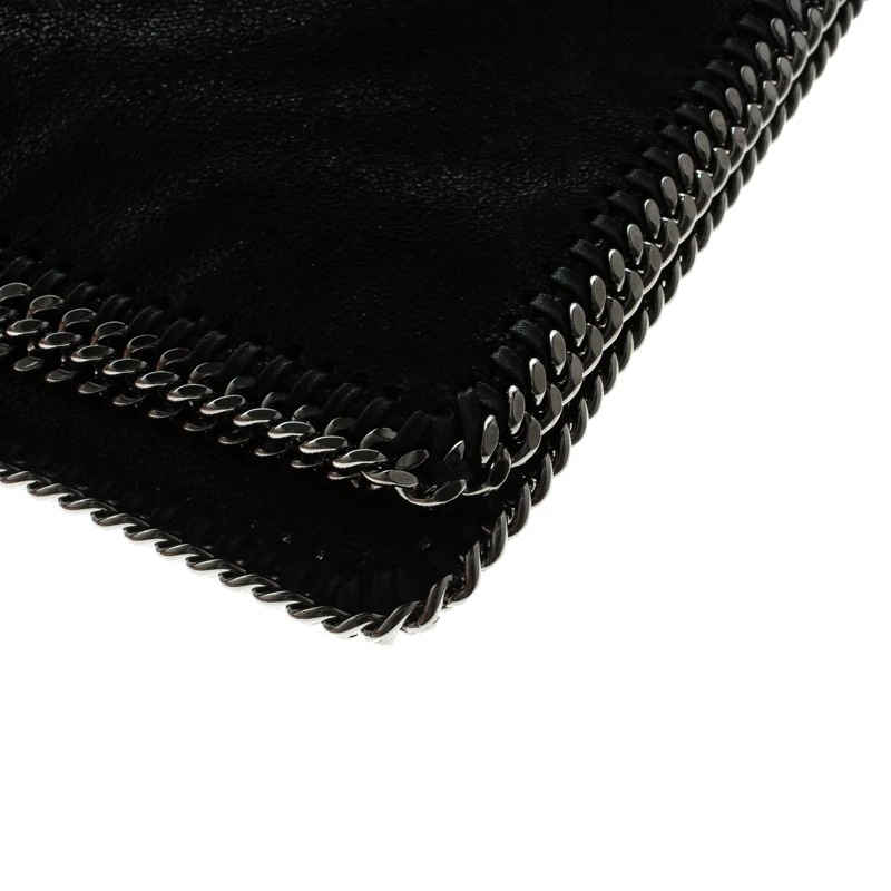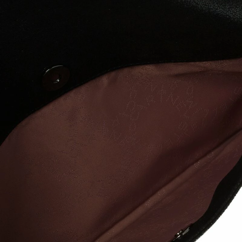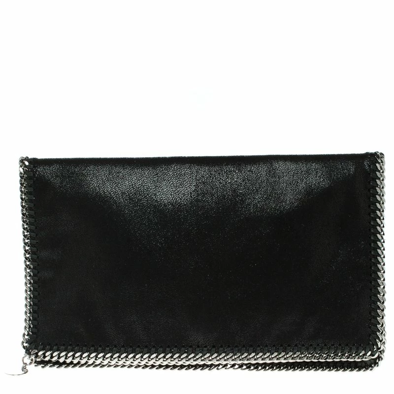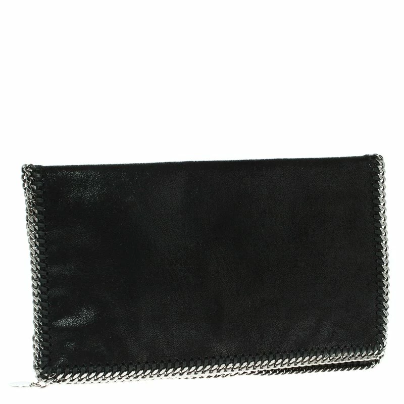 Stella McCartney is known for her modern yet elegant designs and this Falabella fold over clutch perfectly embodies this trait. Crafted in Italy from faux leather with a fabric interior, this clutch has a beautiful black exterior and silver tone chain details at its contours. It also comes with the signature logo-engraved charm as the zipper pull. This piece can be carried with all your chic outfits.