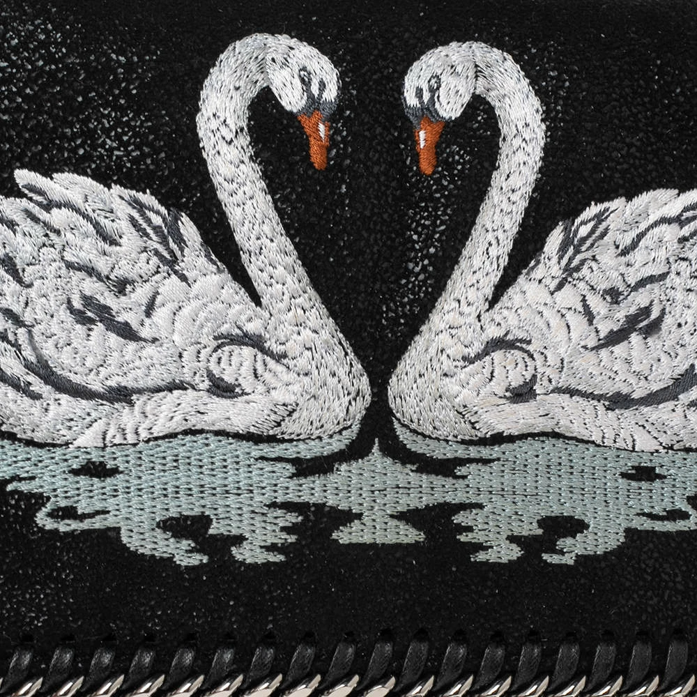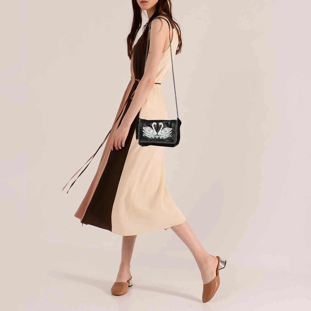 This Falabella flap bag from Stella McCartney is a beauty. Crafted from swan detailed faux leather, it is durable and stylish. While the chain detailing elevate its beauty, the fabric-lined interior will dutifully hold all your daily essentials. You are sure to make hearts skip when you swing this bag using the chain link.