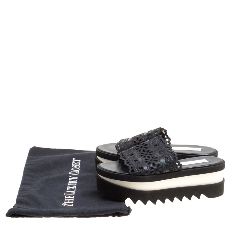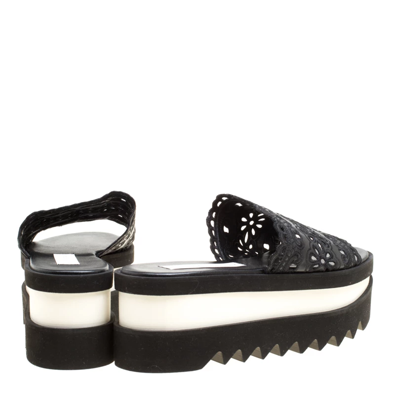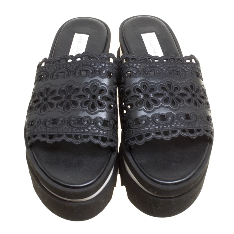 Wearing Stella McCartney just gives one a soothing feeling because of the fact that her designs are all high-fashion and eco-friendly. From her very famous label, comes this pair of slides that are made from faux leather, and styled with floral eyelet embroidery and high platforms set in a modern way.