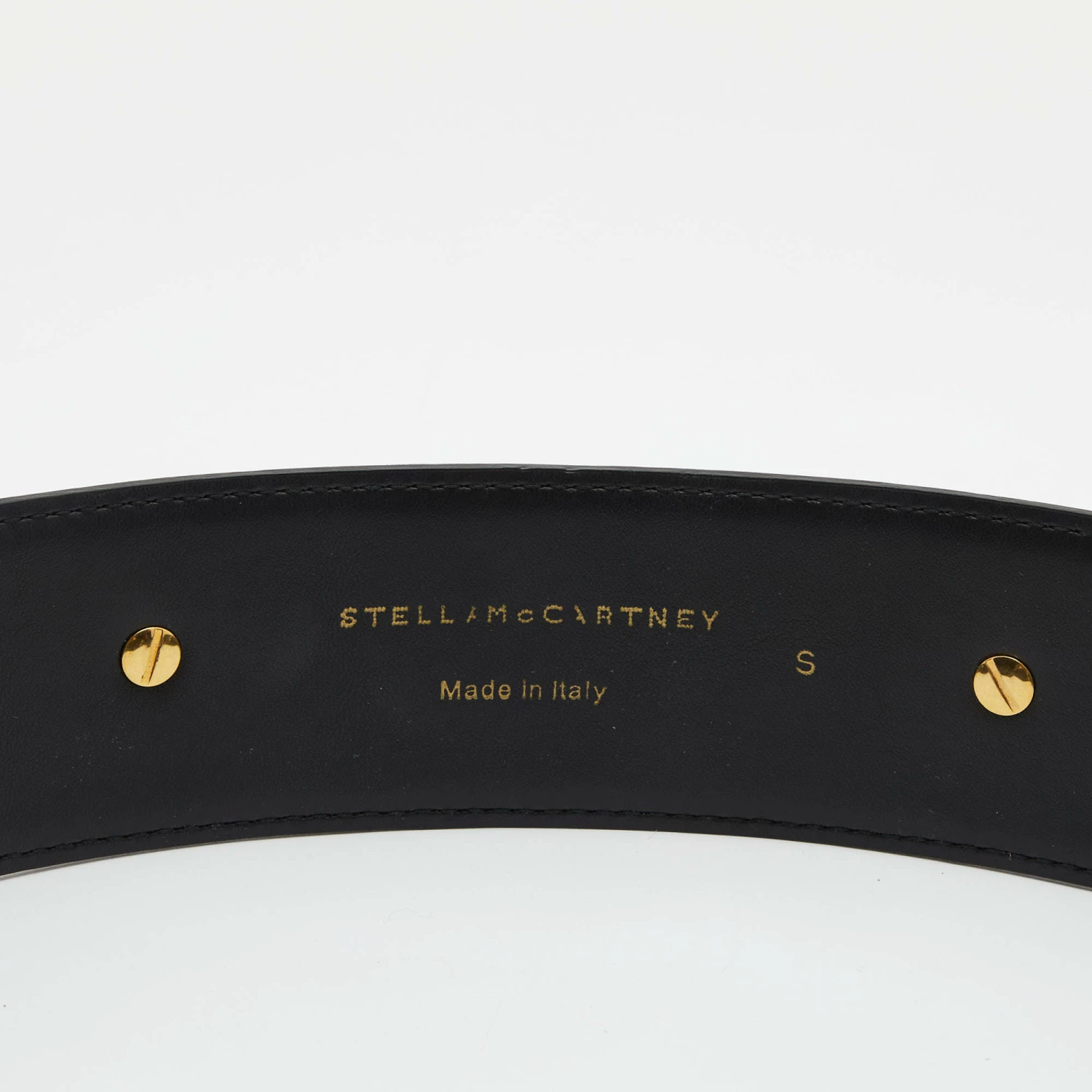 This uber-stylish Stella McCartney waist belt aims to be an elevating piece. It is carefully created using faux leather and added with a gold-tone metal panel, elastic inserts, and snap button closure. See how it transforms a flared dress or a solid jumpsuit!