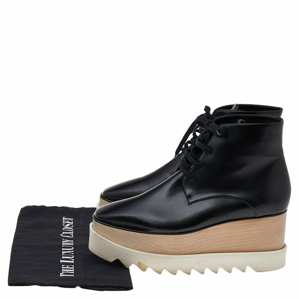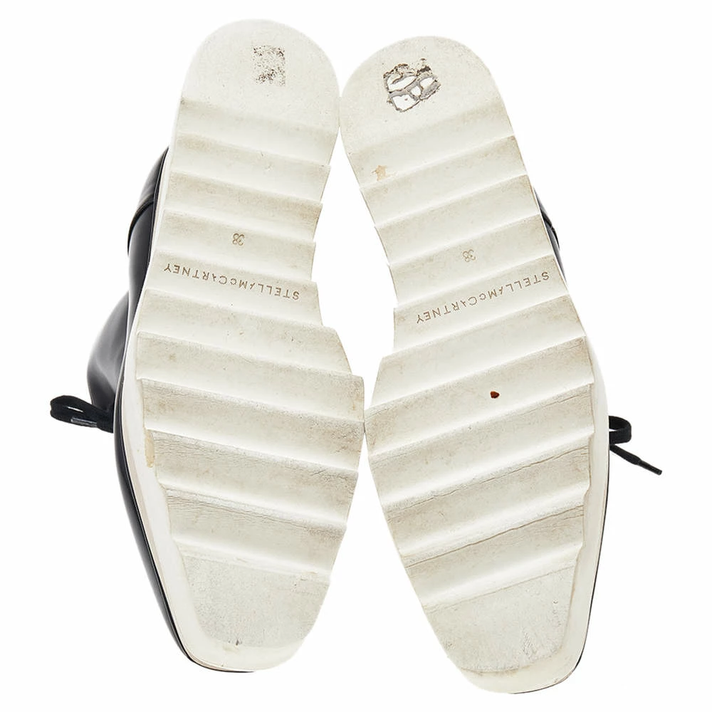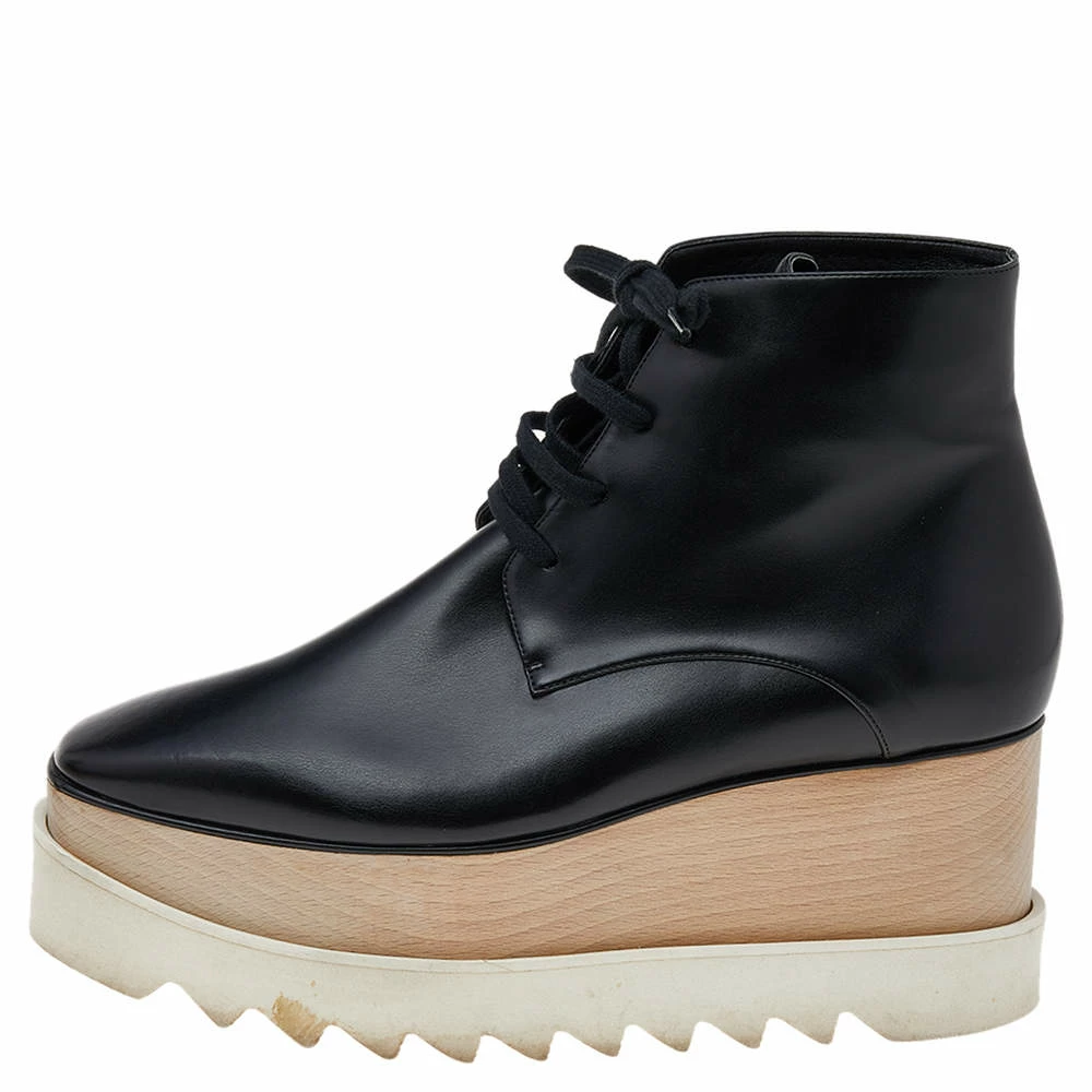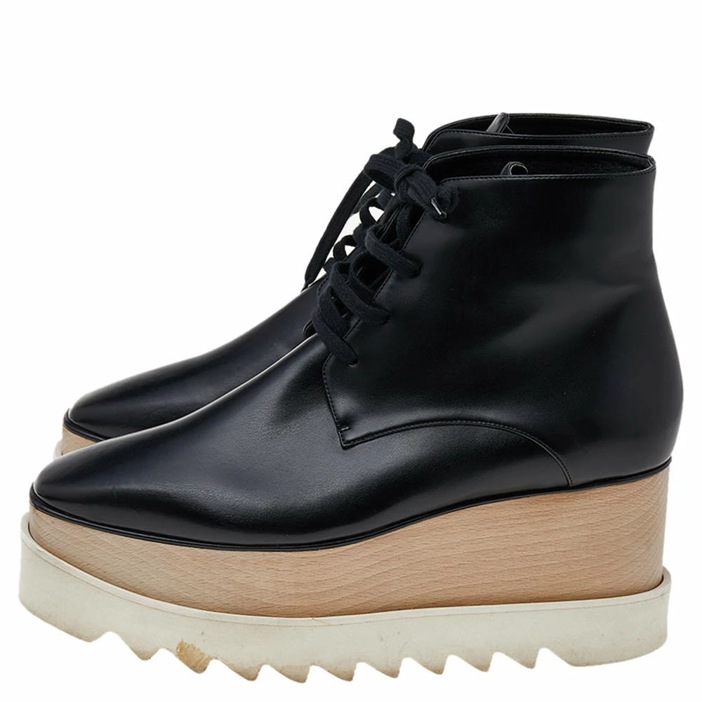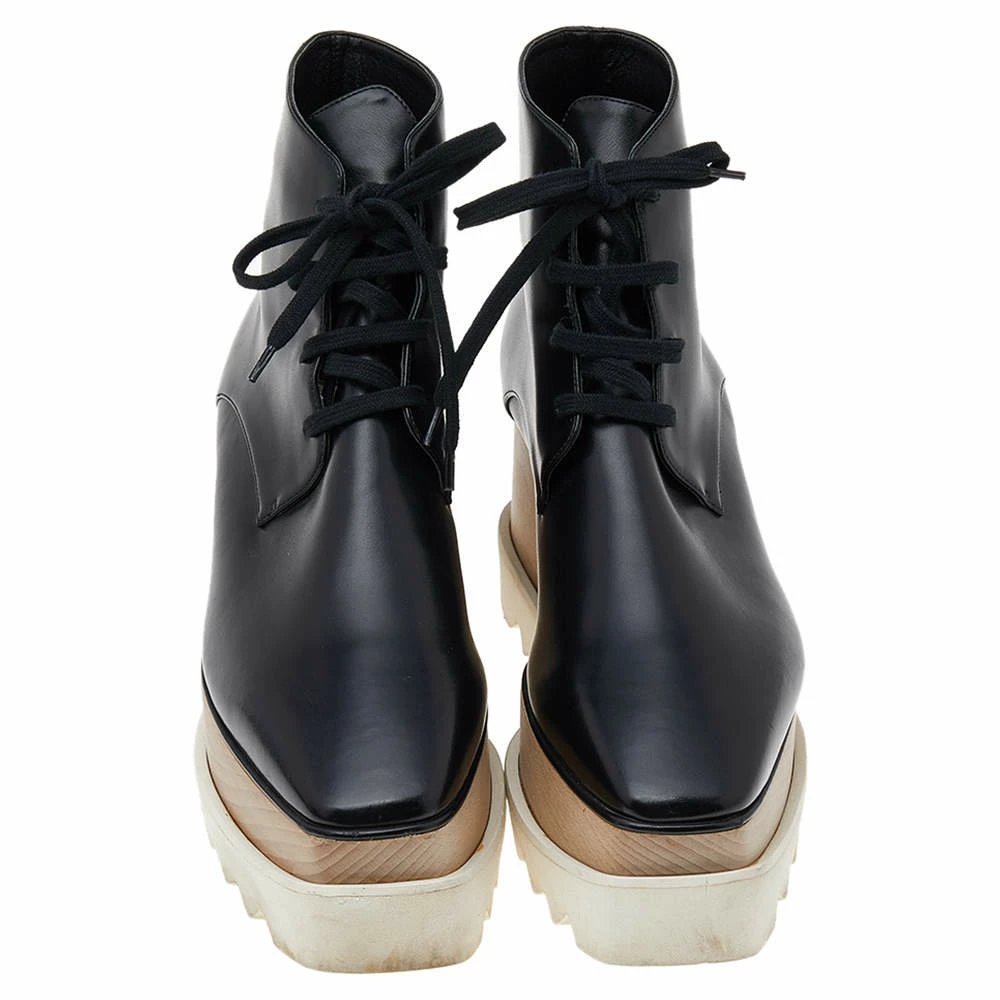 Strong, sturdy, and fashionable, these ankle boots by Stella McCartney are everything you need to edge up! Made from faux leather, they feature round toes and lace-ups on the uppers. The platform and heels are designed for extra traction. The insoles are leather-lined.