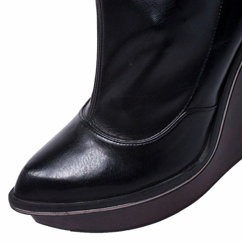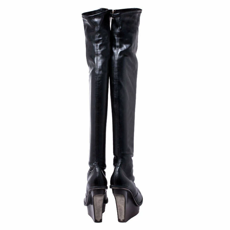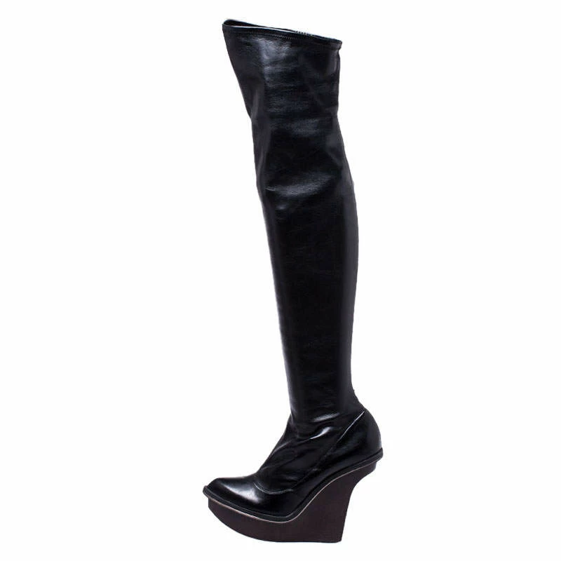 We are praising this pair of boots from Stella McCartney as they are well-made and utterly gorgeous! They are crafted from faux leather as over-the-knee and lined with fabric. The boots bring well-carved wedge heels, which make them simply high-fashion.