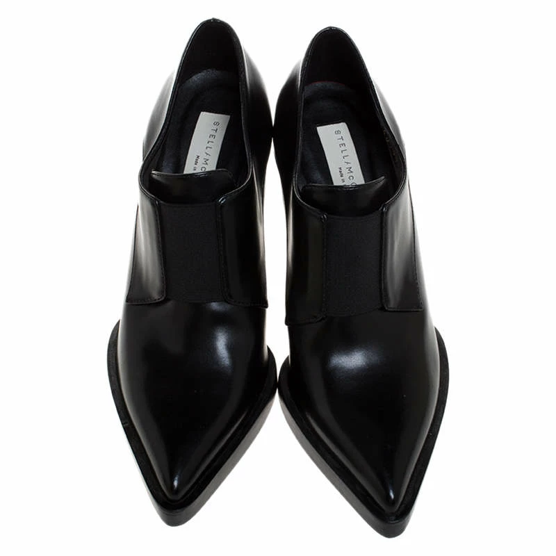 How stylish are these ankle booties from Stella McCartney! These black boots have been crafted from faux leather and styled with pointed toes and elastic panels on the front. They are elevated on 8cm high heels.