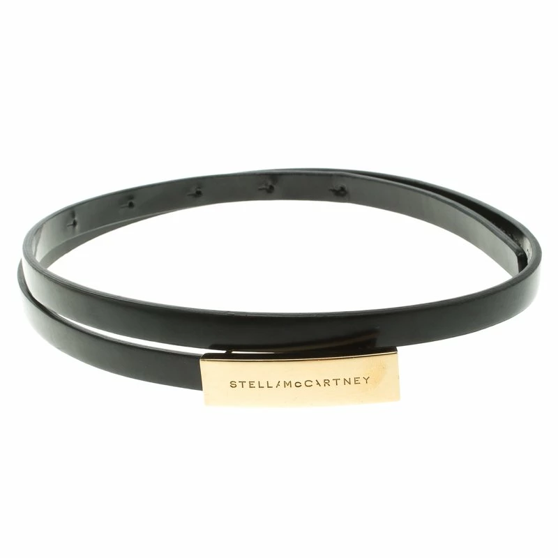 This skinny belt from Stella McCartney is a creation you’ll love to own. Crafted in Italy from faux leather, it flaunts a lovely black hue and is complete with a gold-tone buckle flaunting the label.