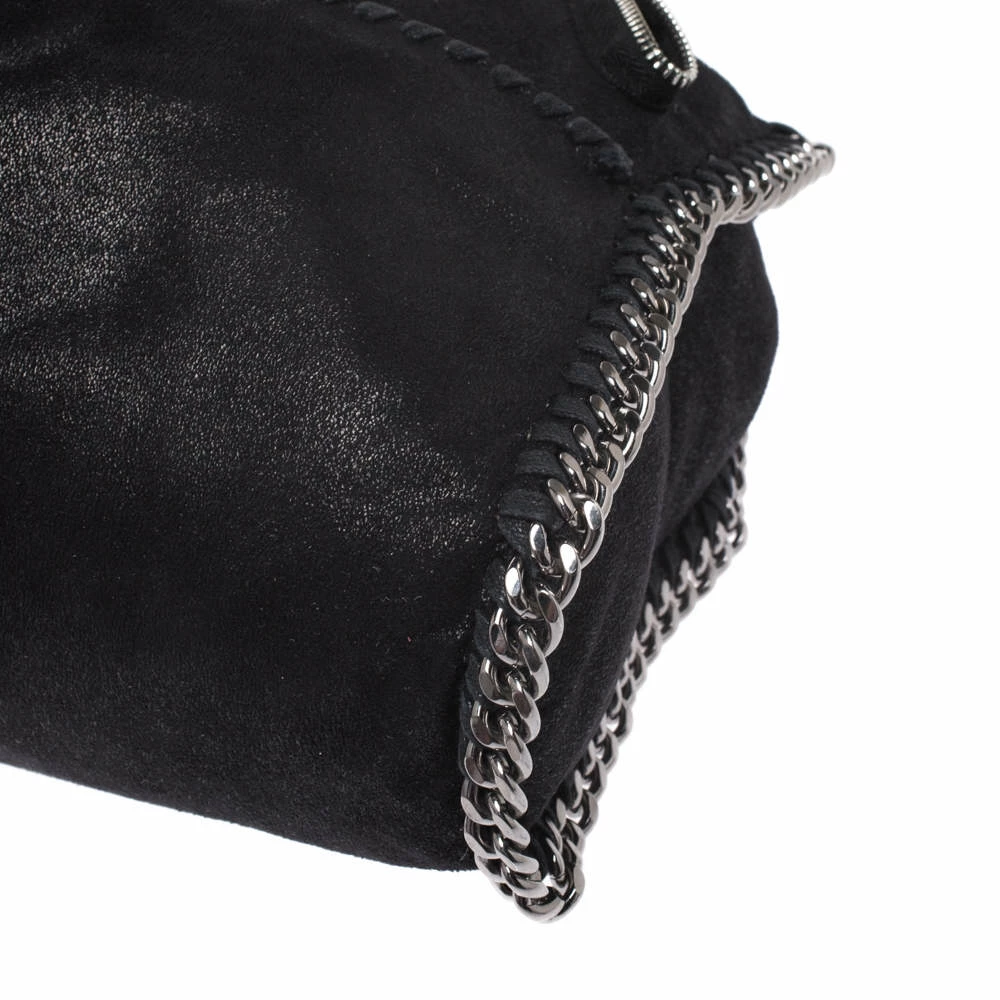 This Falabella tote by Stella McCartney has a unique twist with its zipper design detailing on the front. Crafted in quality black faux leather, the whipstitched chain trim in silver-tone looks edgy. The trim extends to form the chain strap and double handles which add to its overall look.