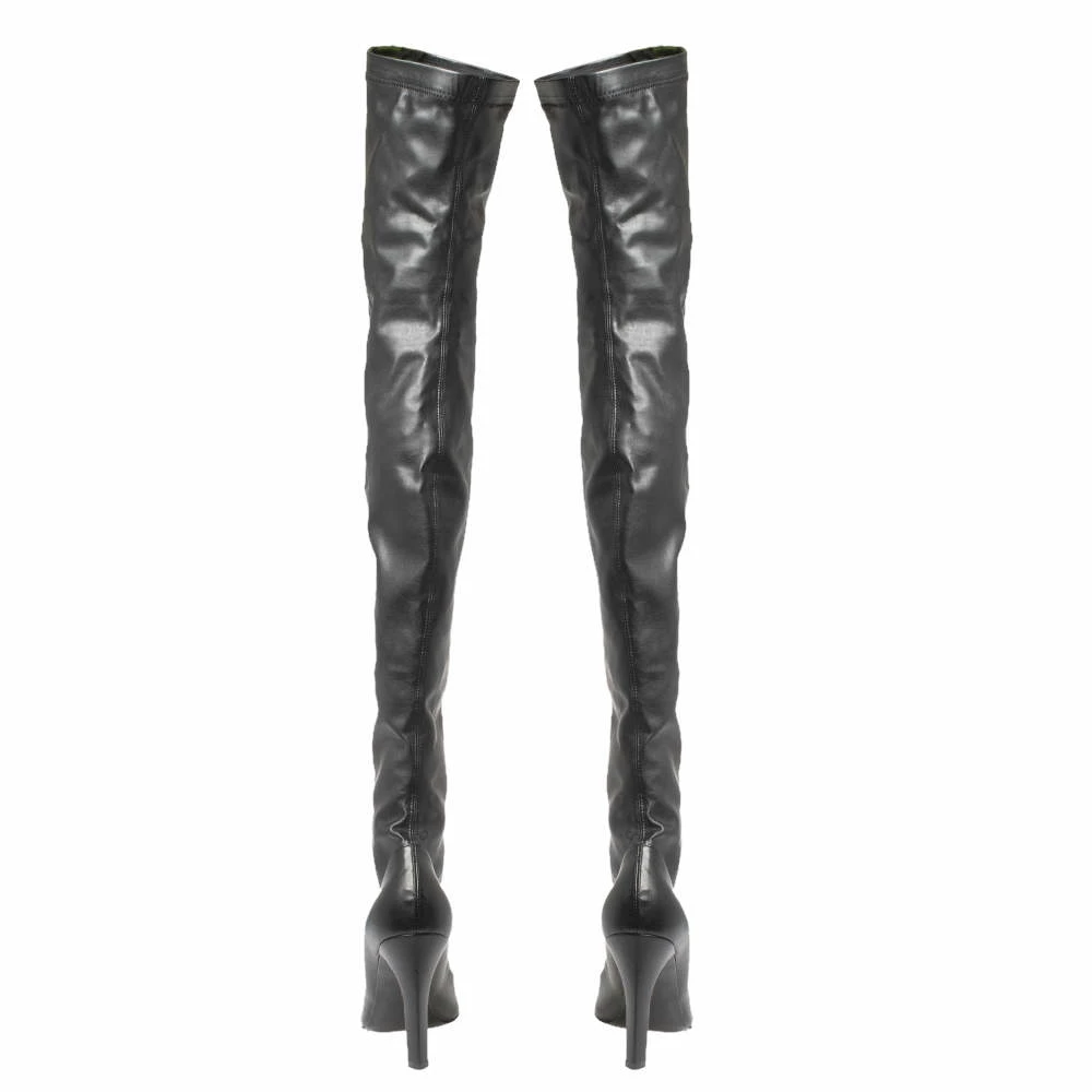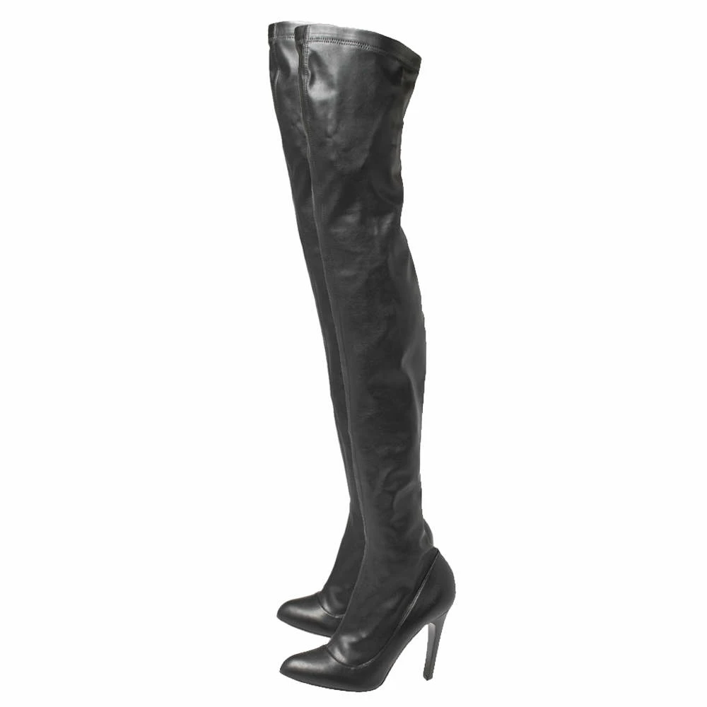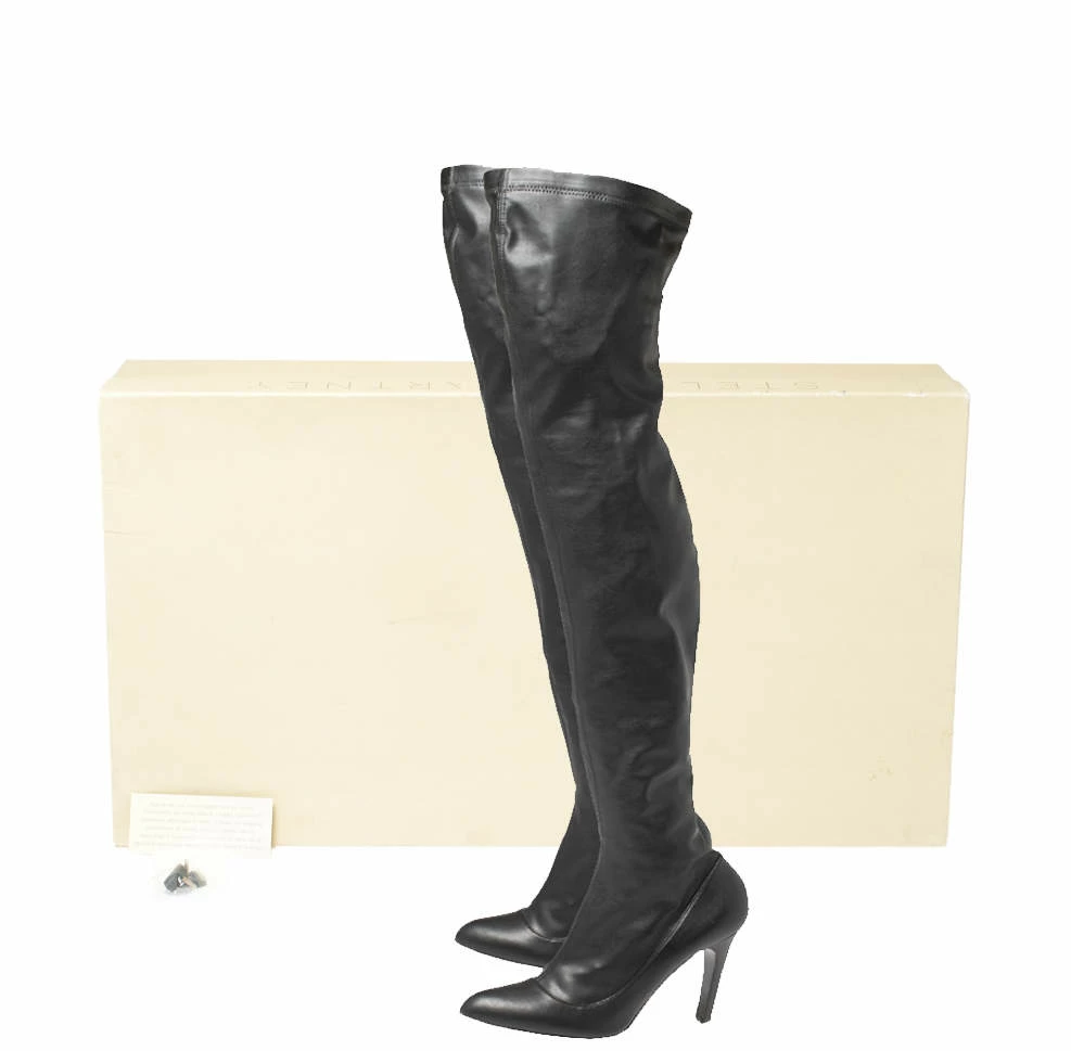 If the quest was for a pair of statement boots, we’d gladly choose these by Stella McCartney. They are crafted from faux leather as thigh-high and designed with covered toes, platforms, and 10.5 cm heels. The black-hued boots are simply high-fashion.
