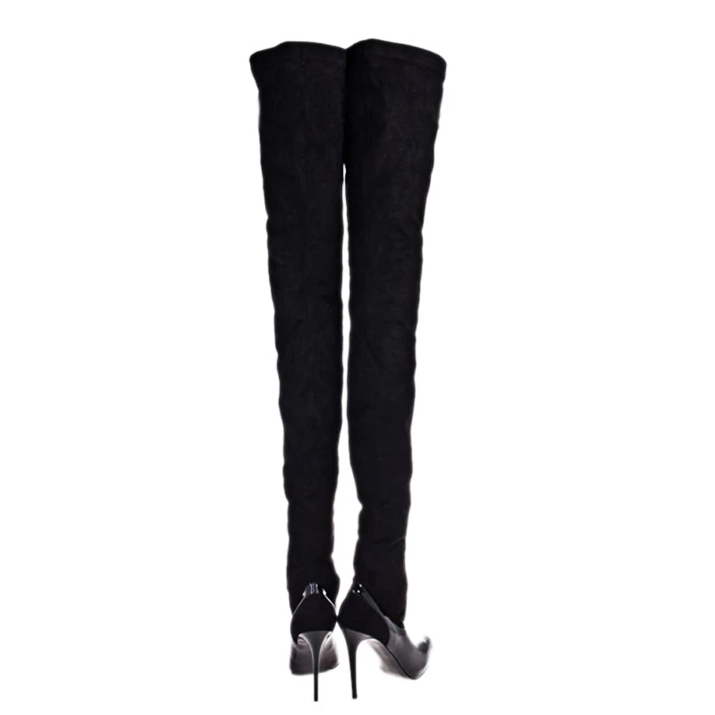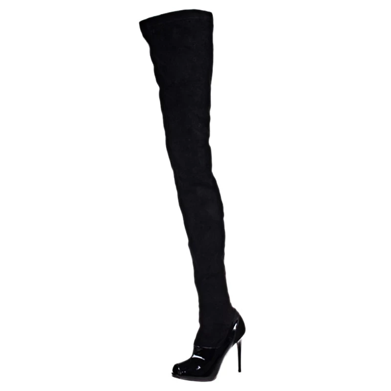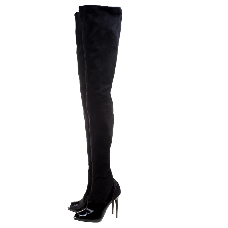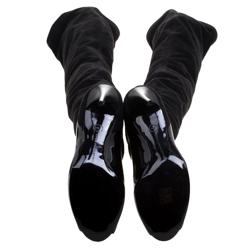To complement your upbeat style, Stella McCartney brings you these gorgeous thigh high boots that come flowing with high-fashion. It is made from faux leather and faux suede and designed with peep toes and 11.5 cm heels. Pair them with oversized sweaters and tunics to look like a diva.