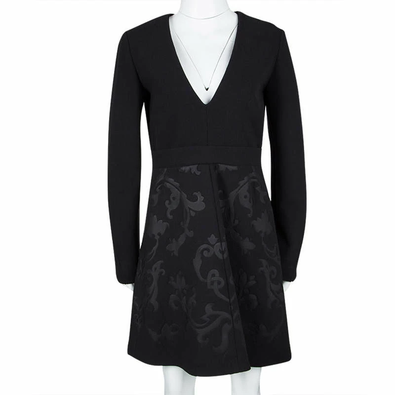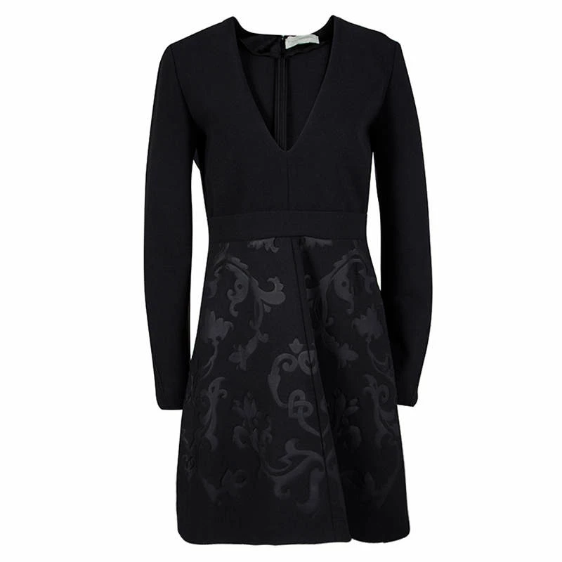 To ready you in a fashionable way, this Stella McCartney dress has been created with fine details like the long sleeves, V neck and the floral embossings in jacquard. You can spice it up with a pair of metallic slingback pumps.