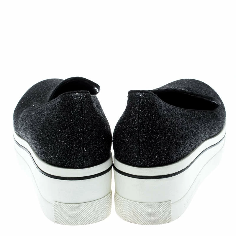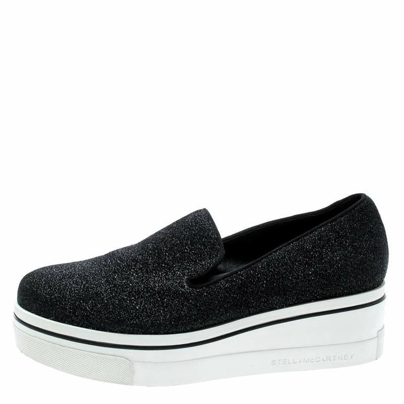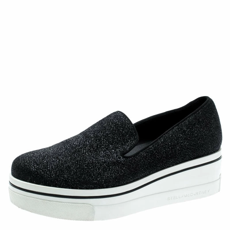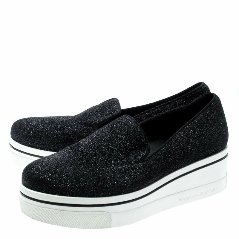 The black glittery Binx platform shoes are a brilliant comfort. The Stella McCartney shoes have been crafted with glitter fabric in Spain and they are easy to slip on. The trendy shoes feature faux leather insoles that make them comfortable to wear during all seasons.
