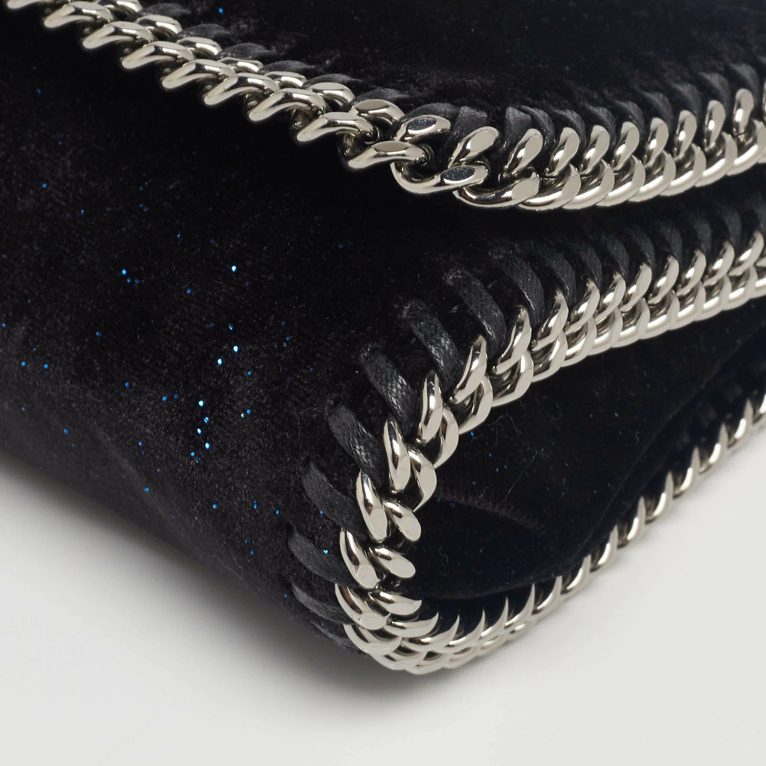 The uber-chic crossbody bag from Stella McCartney totally stuns! It is beautifully crafted from velvet and comes in a gorgeous black hue. A chain shoulder strap and chain lining around the bag elevate this versatile piece that will go with any outfit.